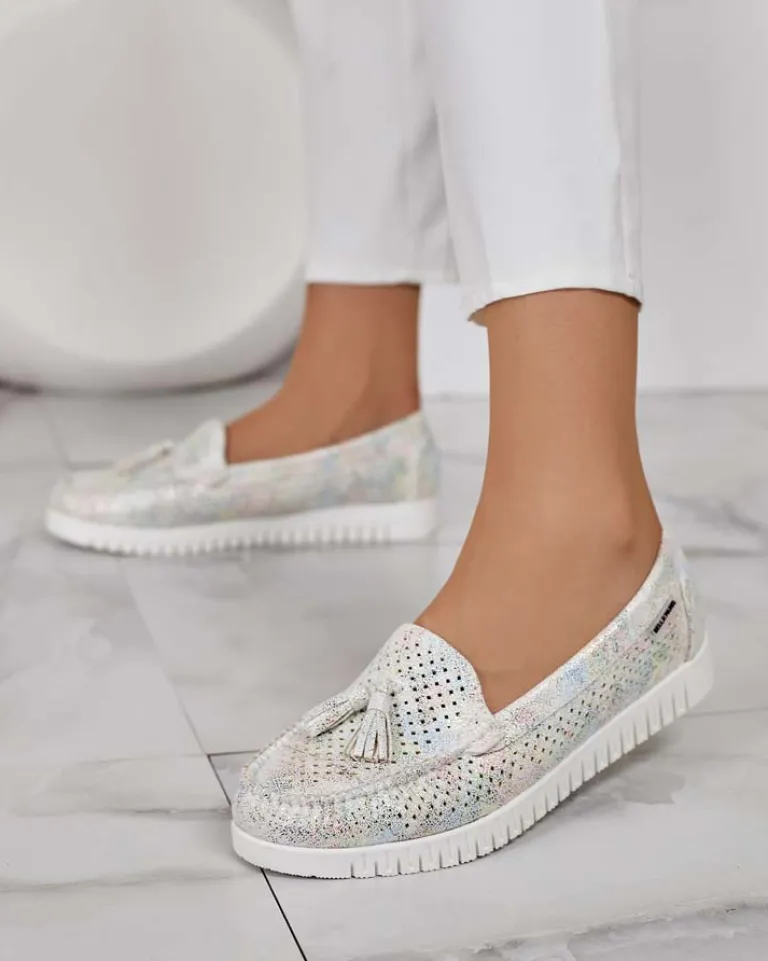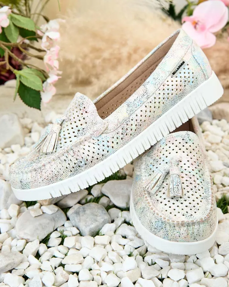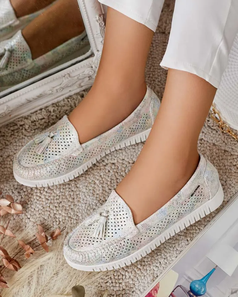 - Ażurowe damskie mokasyny na płaskiej podeszwie. Model jest wykonany ze skóry ekologicznej. W środku wkładka ze skóry naturalnej. Idealna baza na co dzień!