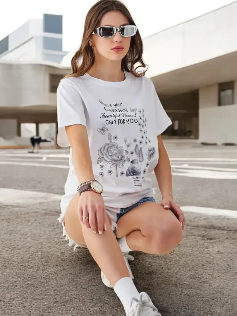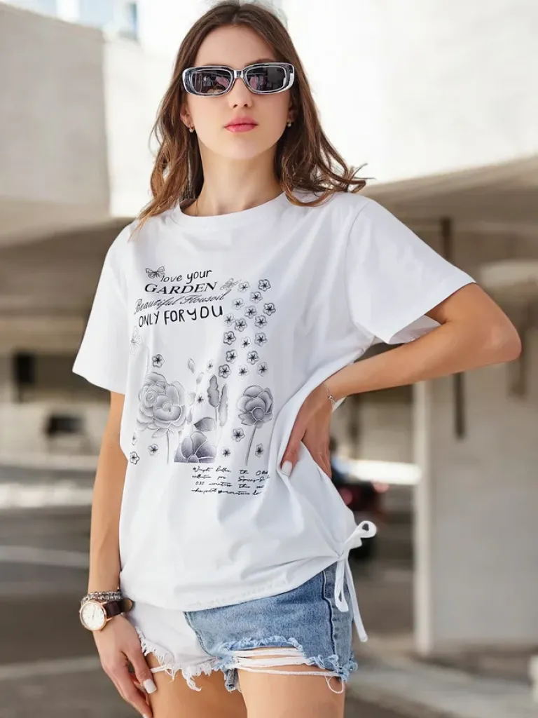 Clearance Bawełniana damska bluzka z napisem Bluzki / Koszule / Koszulki