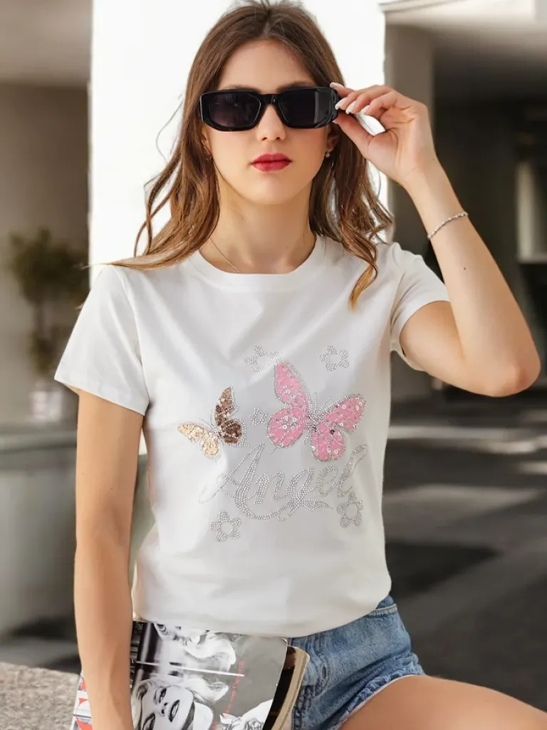 Clearance Bawełniany damski t-shirt Butterfly Bluzki / Koszule / Koszulki