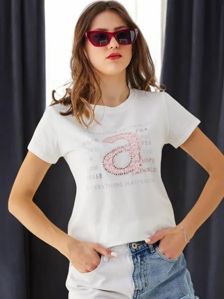 - Bawełniany damski t-shirt to komfortowa i stylowa propozycja na co dzień. Wykonany z miękkiej bawełny, zapewnia wygodę przez cały dzień. Zdobiony subtelnym wzorem.