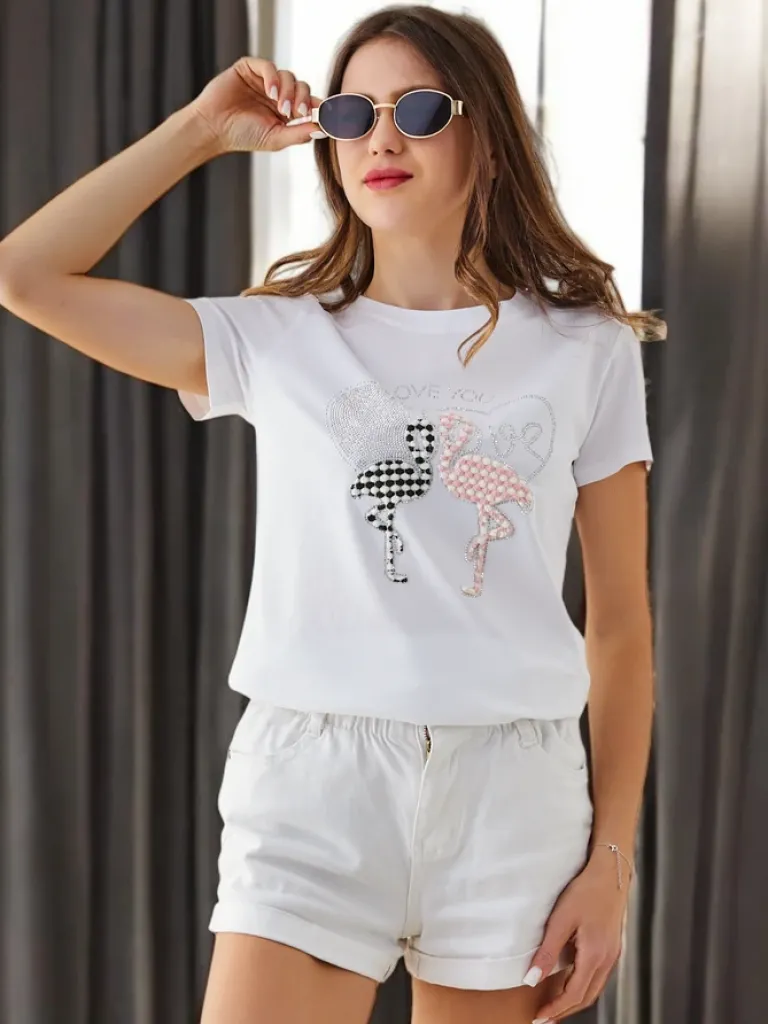 Clearance Bawełniany damski t-shirt Flaming Love Bluzki / Koszule / Koszulki