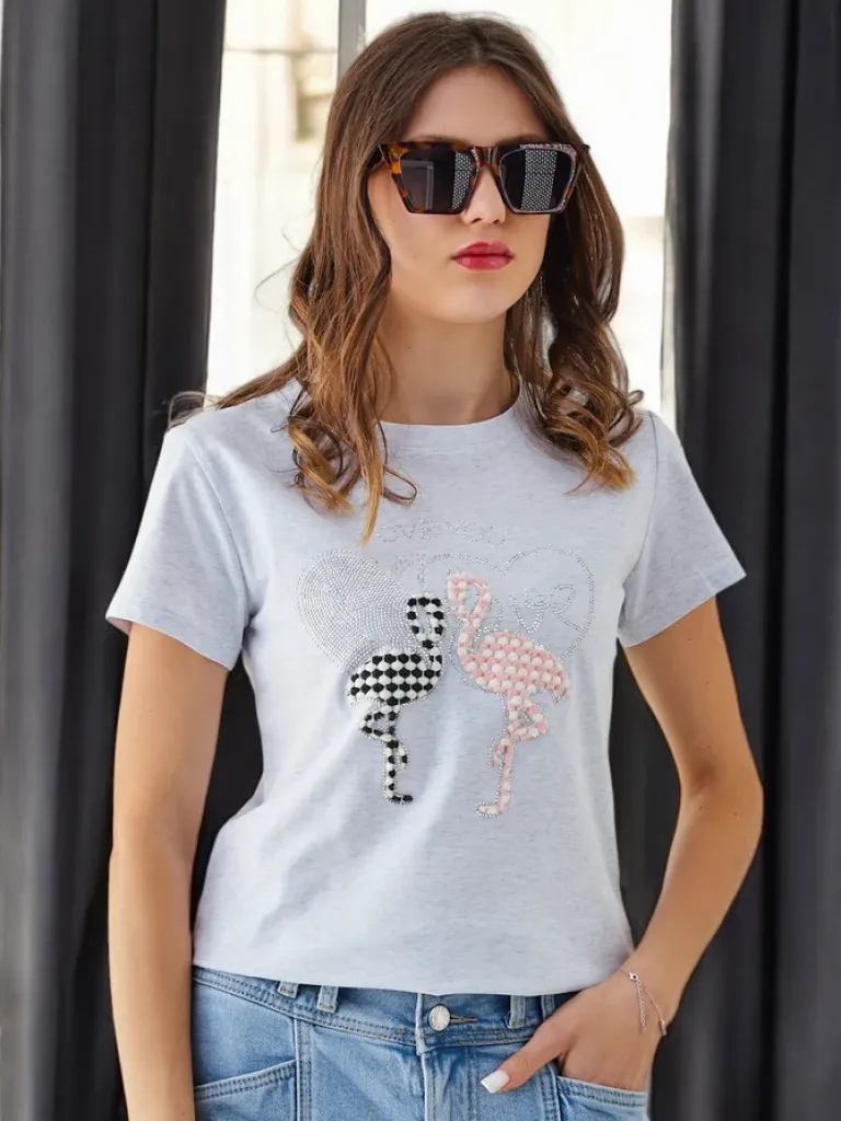 Clearance Bawełniany damski t-shirt Flaming Love Bluzki / Koszule / Koszulki