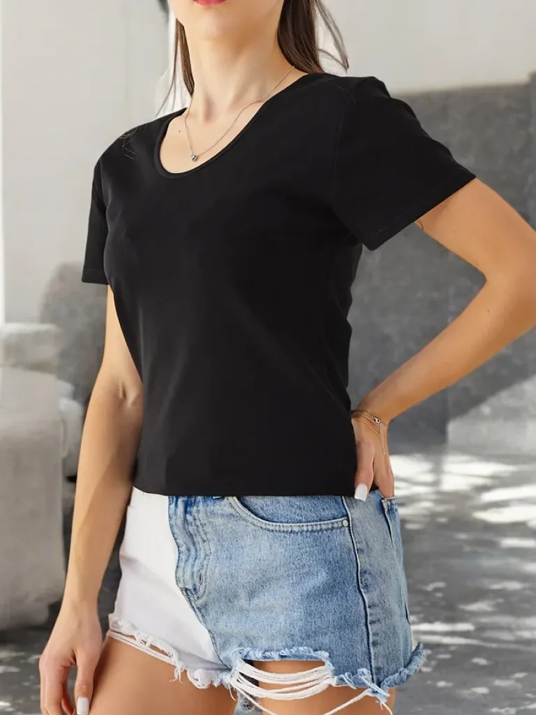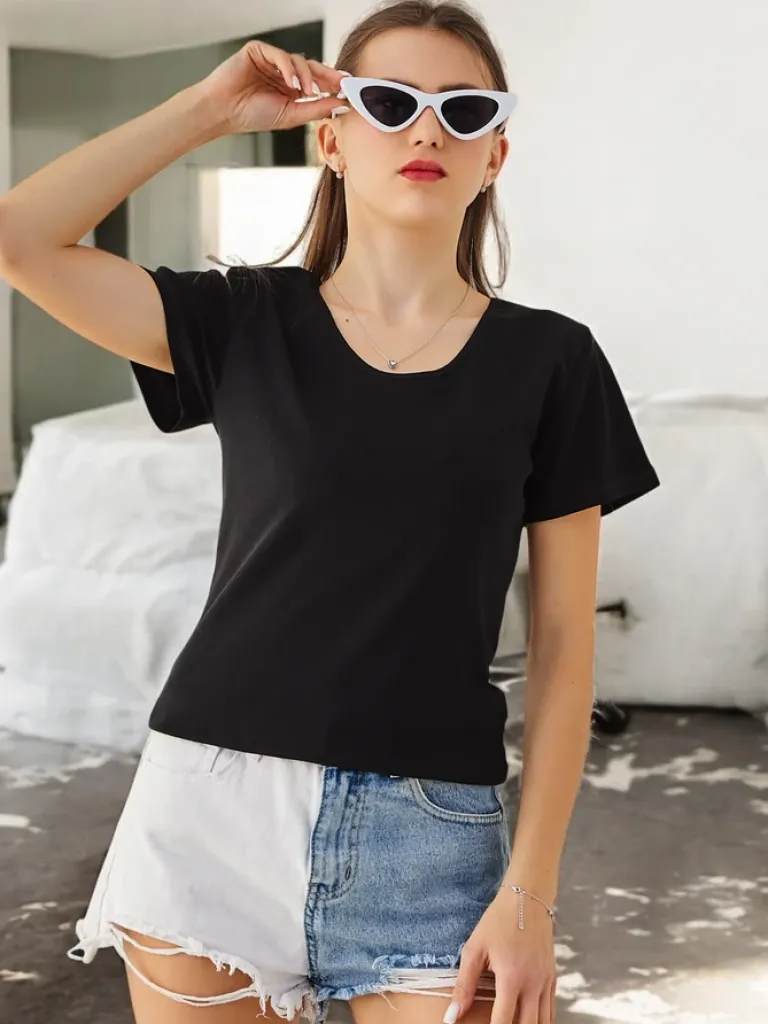 - Bawełniany damski t-shirt to lekka i wygodna propozycja na każdy dzień. Idealny do casualowych stylizacji. Miękka tkanina zapewnia komfort, a minimalistyczny design sprawia, że pasuje do różnych outfitów.