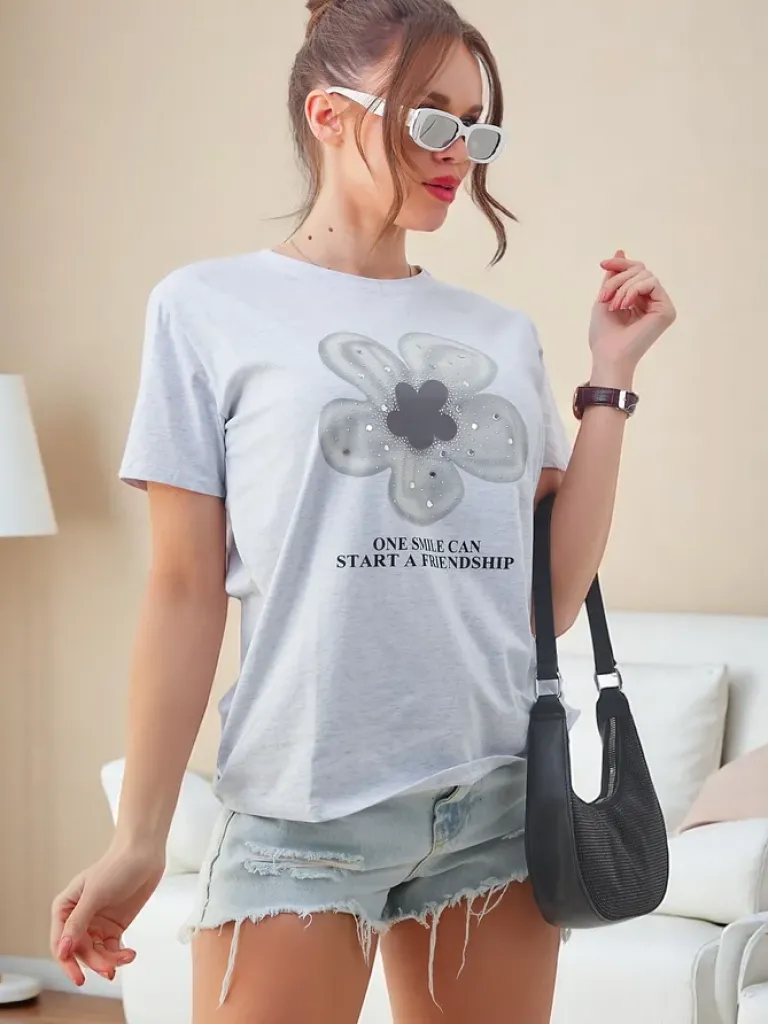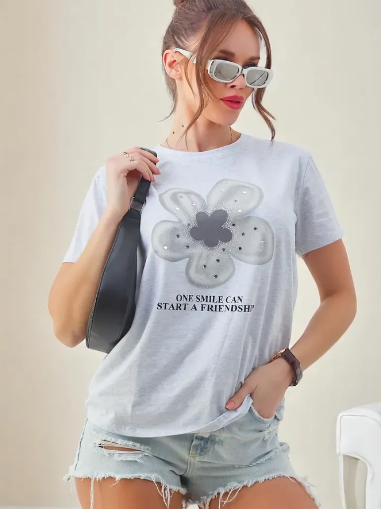 - Bawełniany damski t-shirt to lekka i wygodna propozycja na każdy dzień. Zainspirowany pozytywnym hasłem, idealny do casualowych stylizacji. Miękka tkanina zapewnia komfort, a minimalistyczny design sprawia, że pasuje do różnych outfitów.