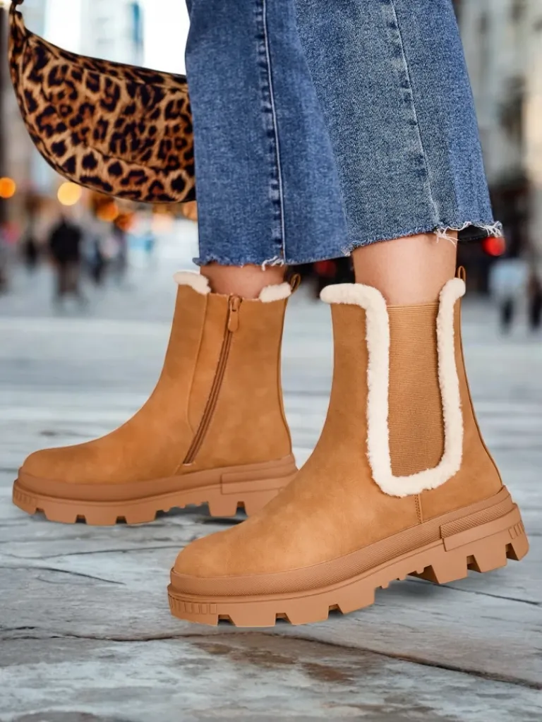 - Mega stylowe damskie botki z ozdobnym futerkiem. Model wykonany z eko skóry matowej. Grubsza podeszwa sprawia komfort na każdym kroku. Świetny wybór na jesień!