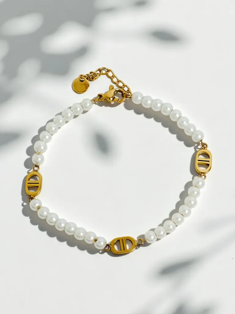 - Bransoletka Aurelia Bianca w odcieniu białej perły, złocona, idealna na każdą okazję.