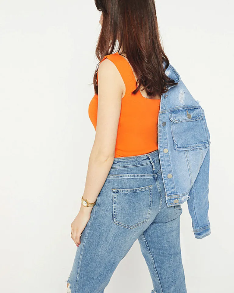 - Kobiecy top na ramiączkach wykonany z elastycznego materiału. Na przodzie ozdoba z cyrkonii. UWAGA: Dokładność pomiaru (+/-) 1 cm.