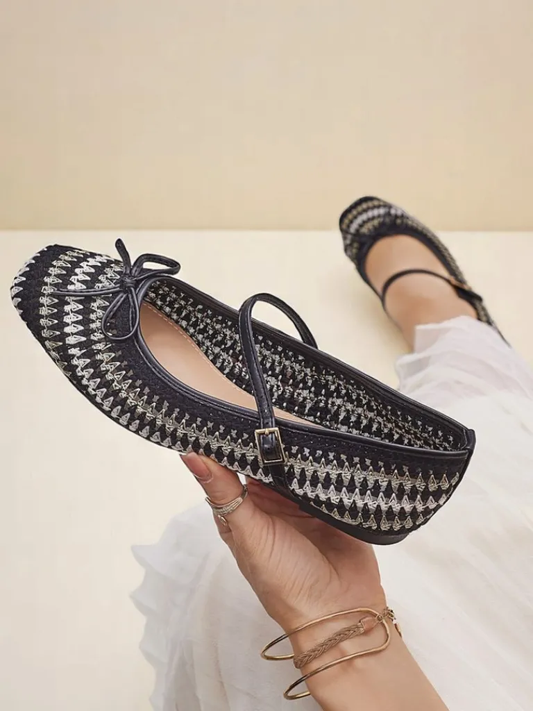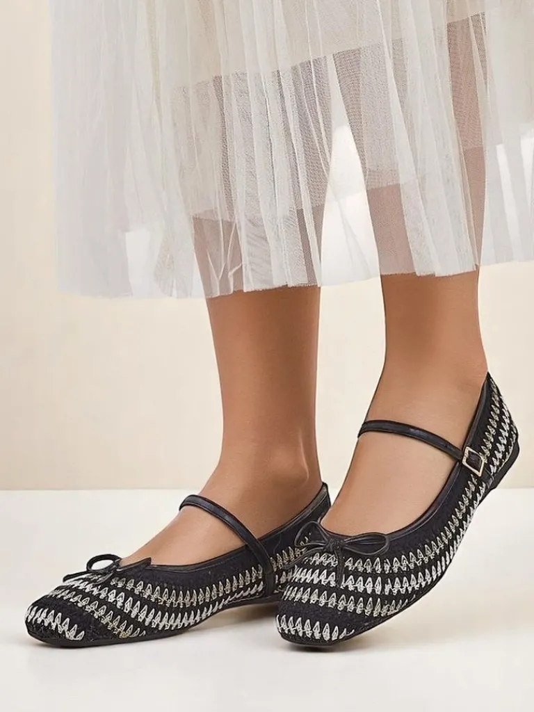- Wyjątkowe baleriny wykonane z tkaniny plecionej. Cholewka zdobiona paseczkiem. Miękka eko-skórzana wkładka dostarczy komfortu, a paseczek utrzyma obuwie idealnie na stopie. Idealnie się sprawdzą do modnych stylizacji!