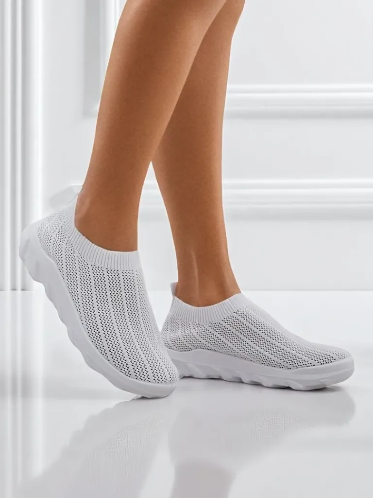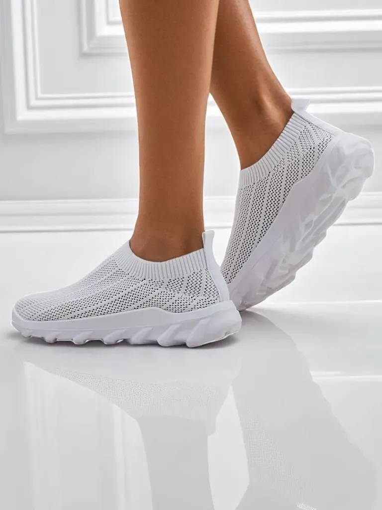 Clearance Damskie białe tenisówki Astrea z przewiewnej tkaniny na płaskiej podeszwie Damskie Bieganie, Ćwiczenia I Trening