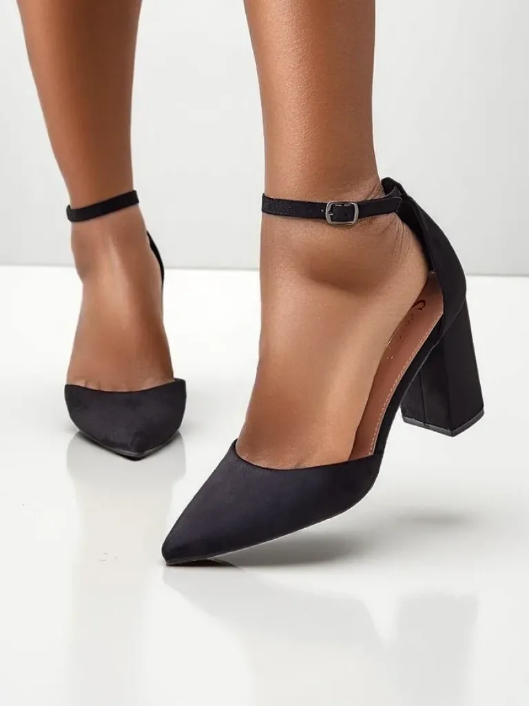- Eleganckie damskie czółenka na słupku, wykonane ze skóry ekologicznej zamszowej. Środek buta jest wyłożony skórą ekologiczną, a odkryty nosek nadaje wiosenny vibe!