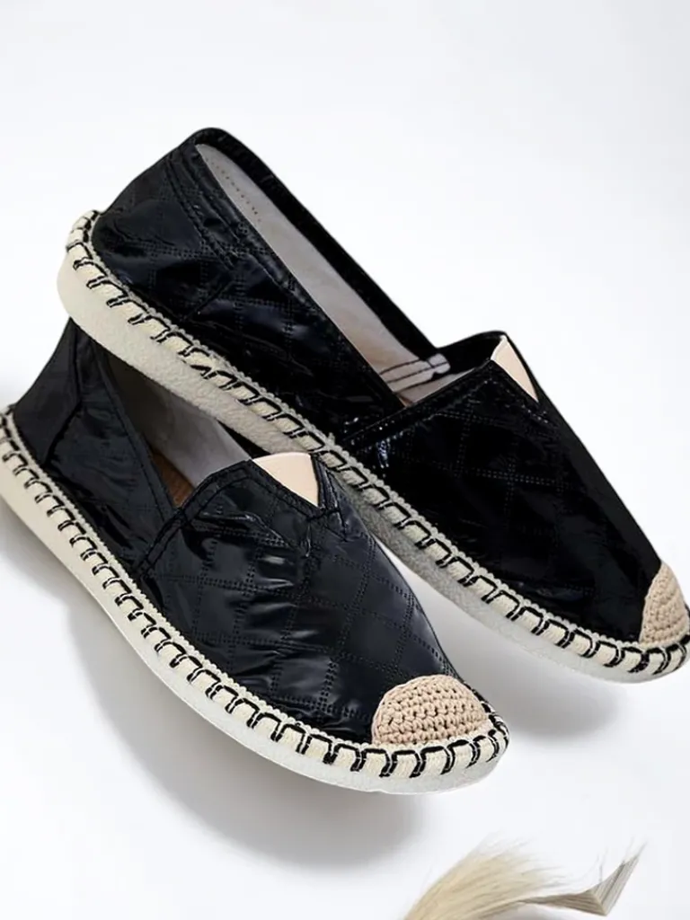 - Wyjątkowe damskie espadryle wykonane z pikowanej tkaniny a’la cerata. Płaska podeszwa zdobiona sznurkiem jutowym zapewnia wygodę. Model wsuwany. Doskonały dodatek do letnich stylówek!