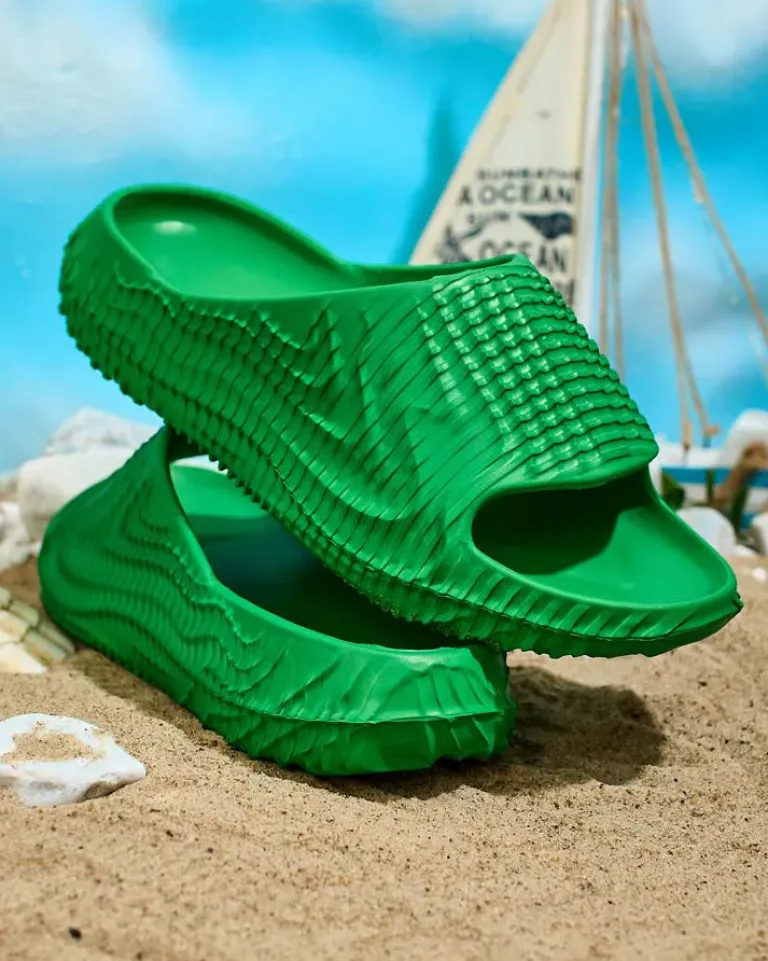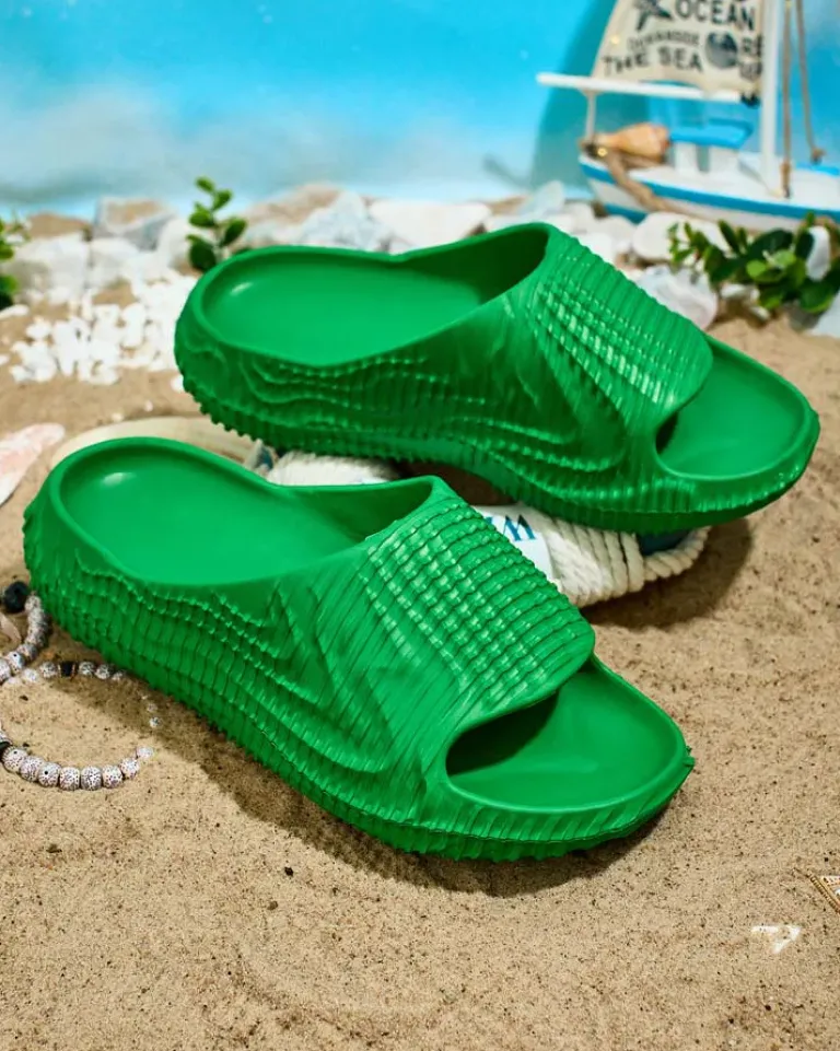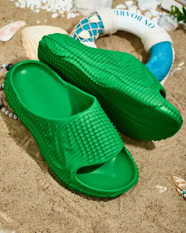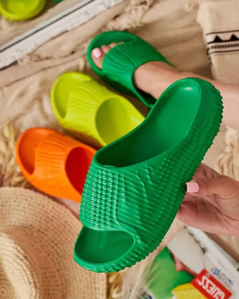 - Świetne damskie gumowe klapki na płaskiej podeszwie. Posiadają ozdobną cholewkę z tłoczonej gumy. Idealny wybór na wakacje!