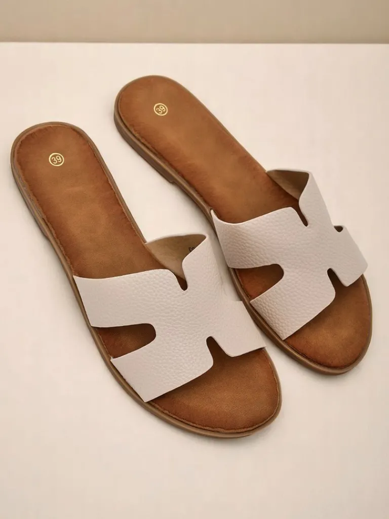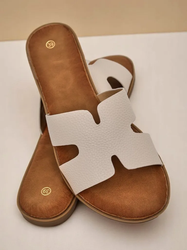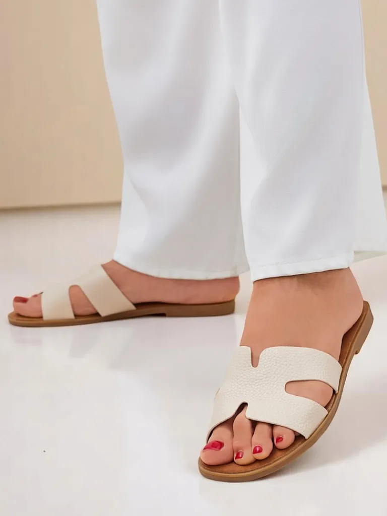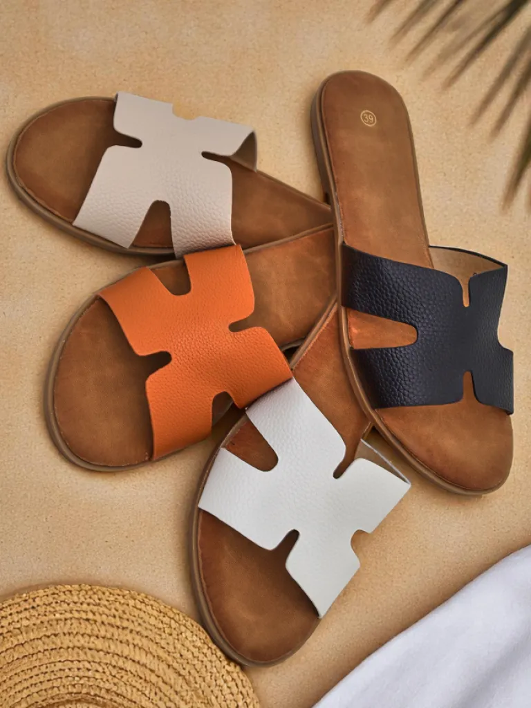 - Świetne damskie klapki na płaskiej podeszwie. Wykonane z ekologicznej skóry. Idealny wybór na co dzień!