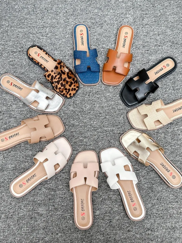 - Casualowe damskie klapki na płaskiej podeszwie. Wykonane w całości z ekologicznej skóry. Idealny wybór na wakacje!