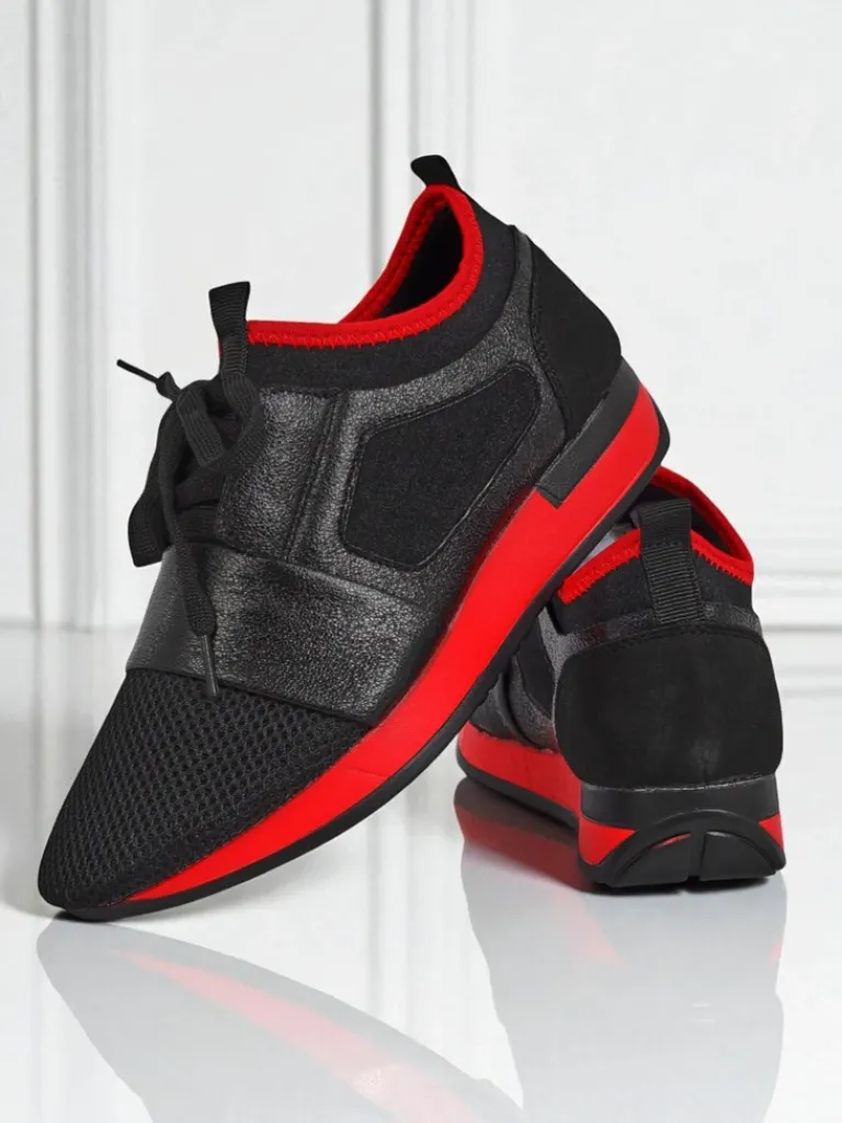 - Oryginalne sneakersy damskie na płaskiej podeszwie – perfekcyjne połączenie stylu i komfortu. Obuwie wykonane z eko skóry i materiału tkaninowego oraz tkaninowej wkładki. Model sznurowany. Idealne dla aktywnych osób!