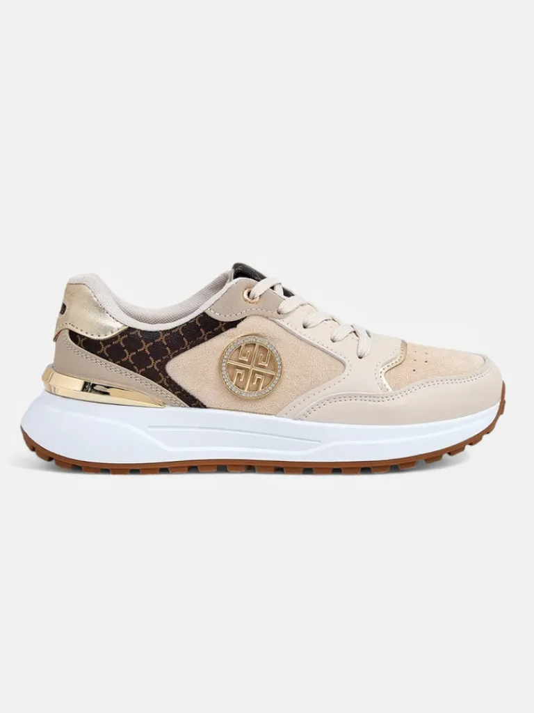 - Oryginalne sneakersy damskie na płaskiej podeszwie – perfekcyjne połączenie stylu i komfortu. Obuwie wykonane z eko skóry i tkaninowej wkładki. Model sznurowany. Idealne dla aktywnych osób!