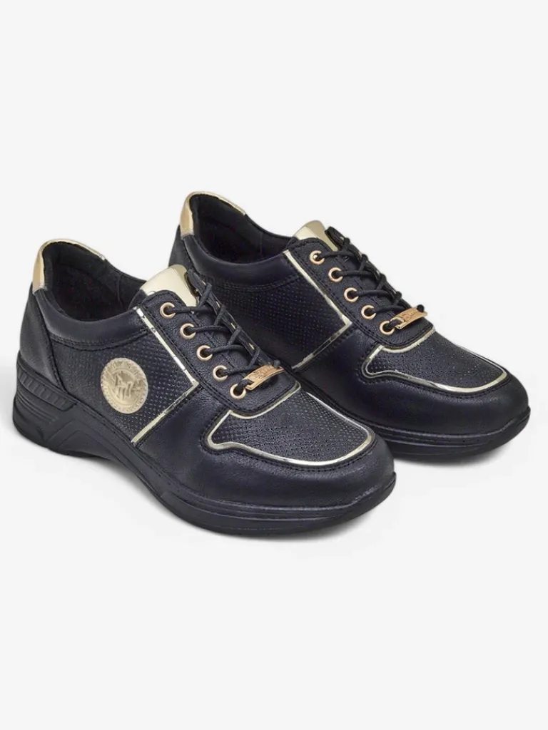 - Modne sneakersy damskie na koturnie, wykonane z eko skóry. W środku miękka, wkładka ze skóry naturalnej. Obuwie sznurowane. Będą świetną ozdobą do codziennych stylizacji.