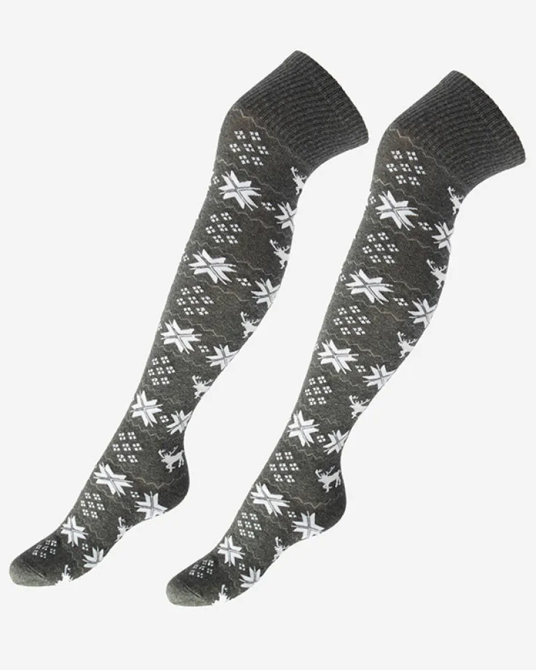 - Przeurocze damskie skarpety za kolano, wykonane z elastycznej tkaniny bawełnianej wykończonej świątecznym wzorem. Ciepłe i wygodne – to doskonała propozycja na prezent!