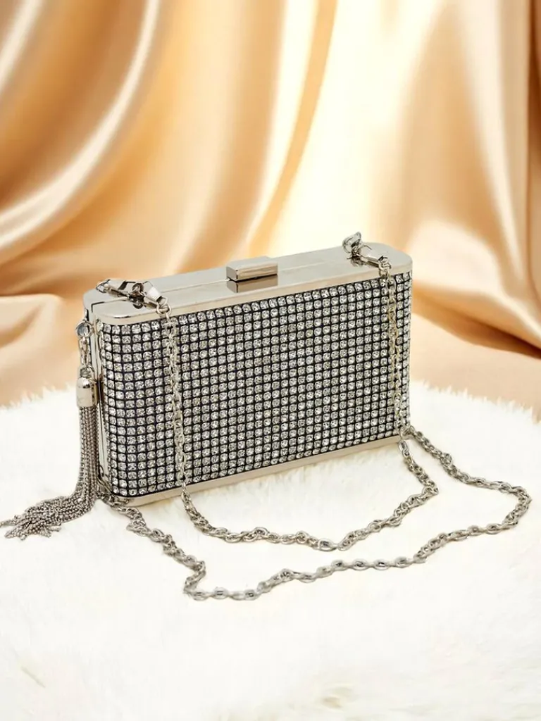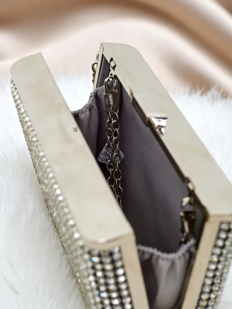 - Wieczorowa kopertówka z cyrkoniami, zapinana na zatrzask. Mała, elegancka, z odpinanymi paskami — noś ją w ręku lub na ramieniu. Dodaje blasku każdej stylizacji!
