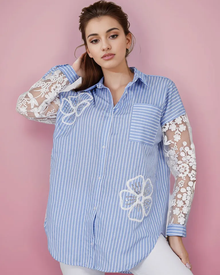 Clearance Koszula damska w paski z koronką Bluzki / Koszule / Koszulki