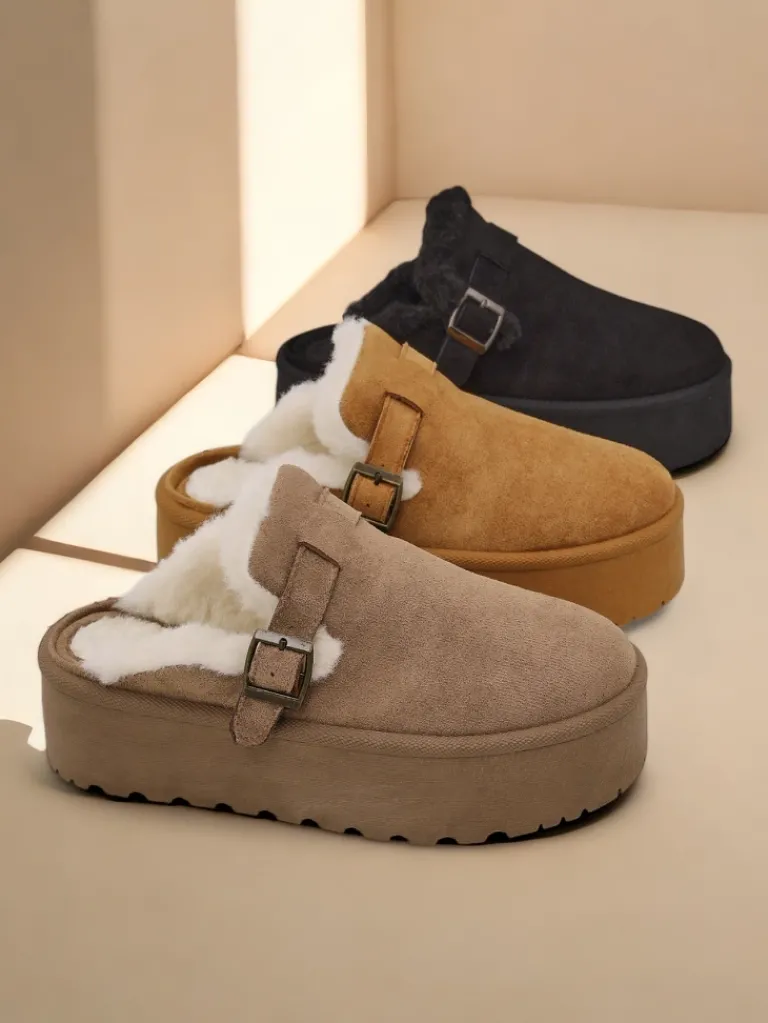 - Świetne damskie zimowe buty typu śniegowce na platformie bez pięty. Cholewka wykonana jest ze skóry ekologicznej zamszowej, środek ocieplony futerkiem. Idealna baza na zimę!