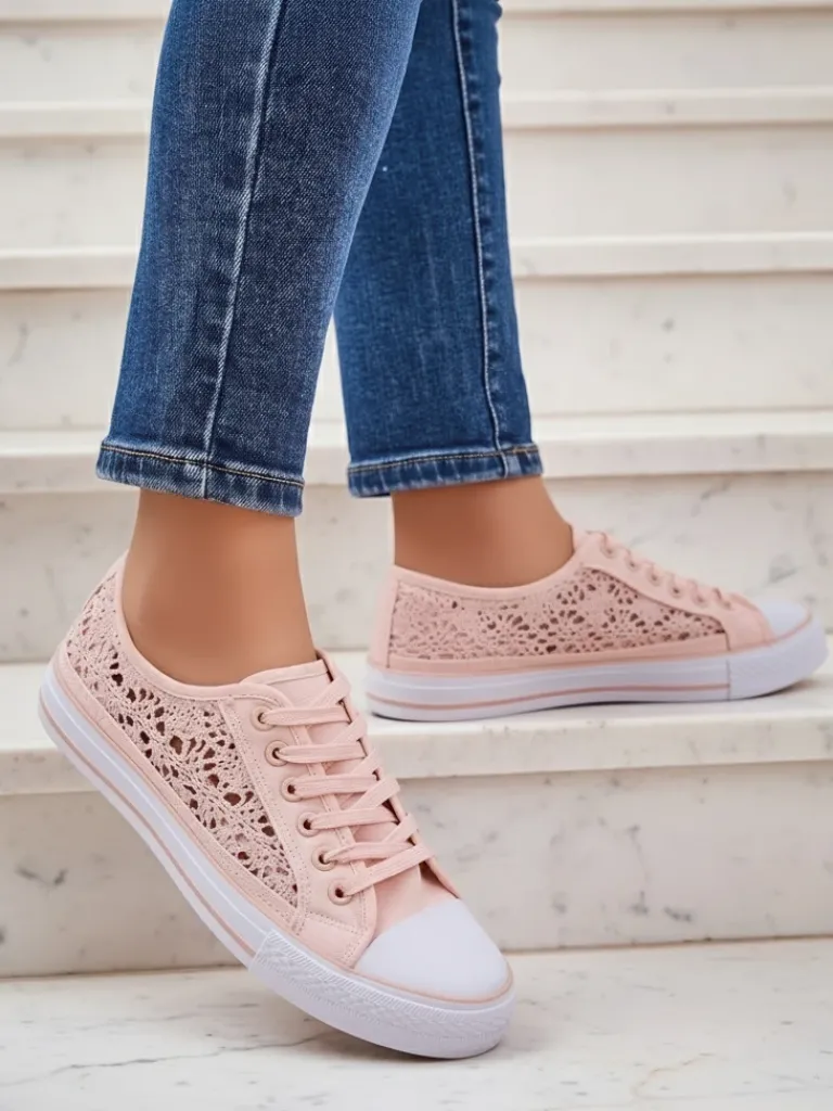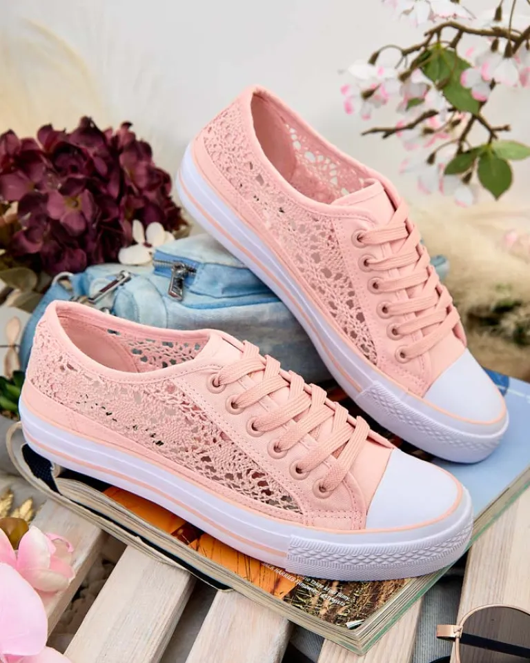 - Damskie buty na płaskiej podeszwie. Para w stylu casual jest wykonana z materiału tkaninowego z ażurowym wykończeniem, wkładka tkaninowa. Model posiada ozdobny haft. Idealne dla tych, którzy cenią komfort!