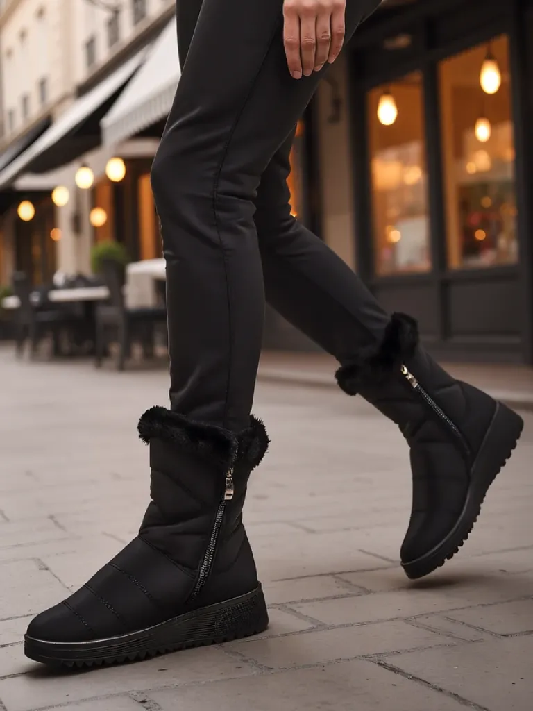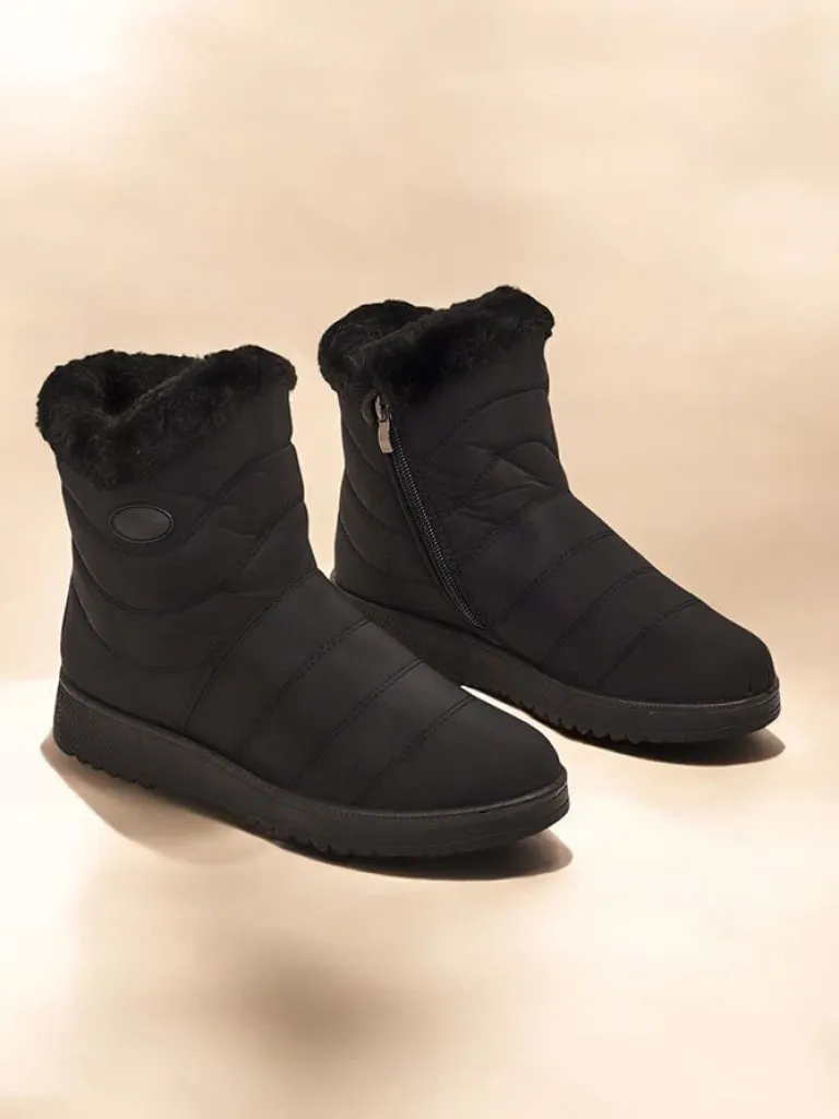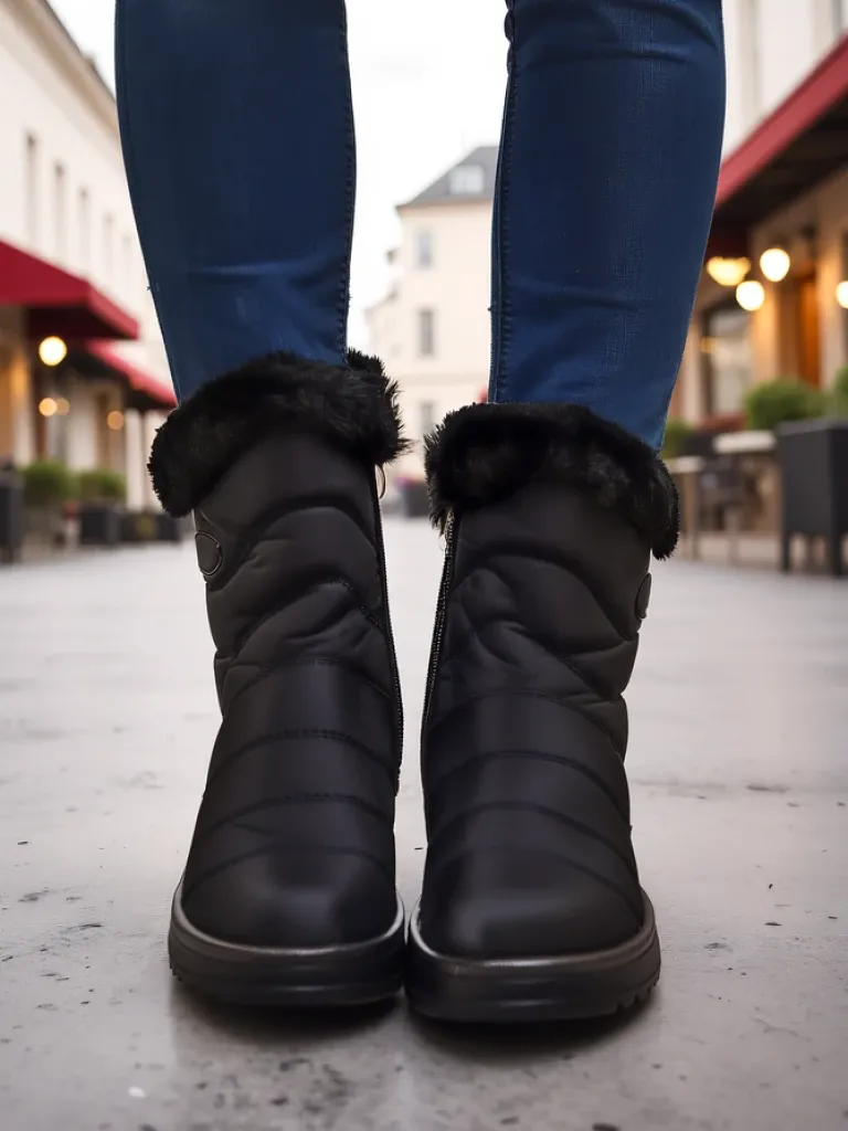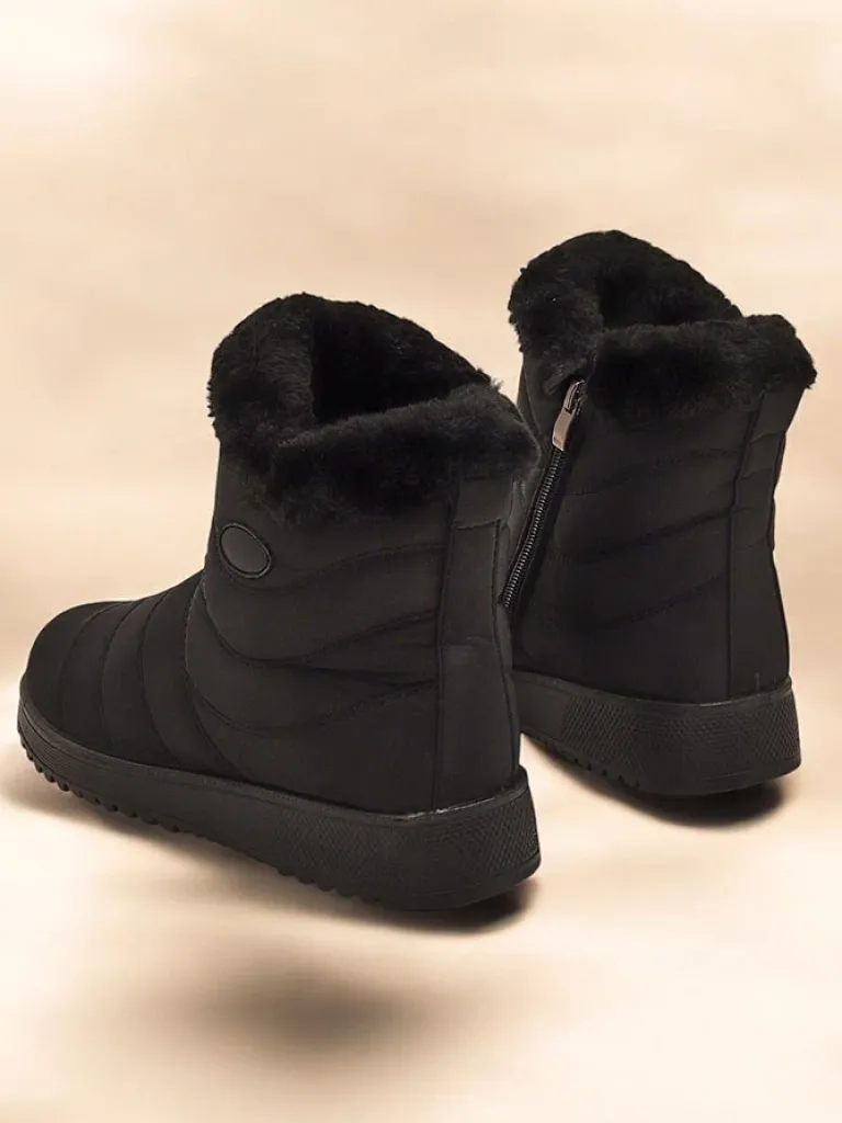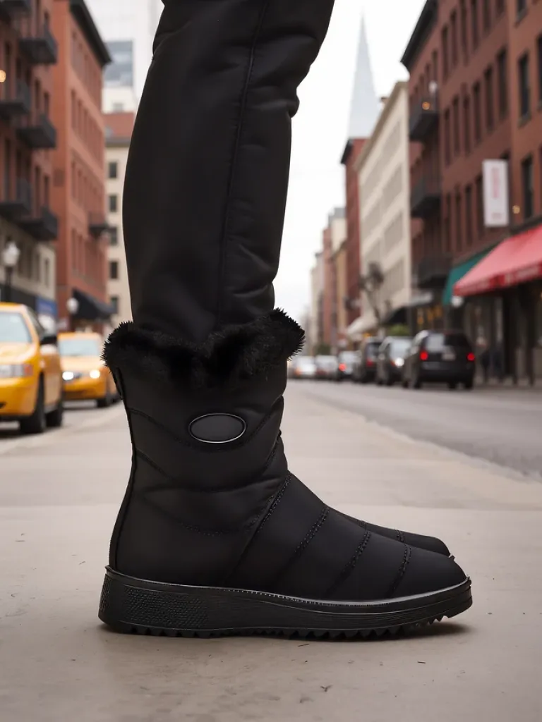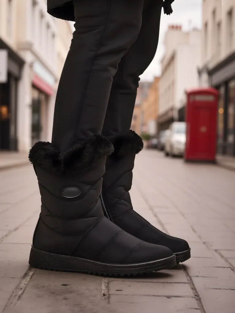 - Świetne damskie zimowe buty typu śniegowce na płaskim obcasie. Cholewka wykonana jest z tkaniny a’la cerata, środek ocieplony futerkiem. Idealna baza na zimę!