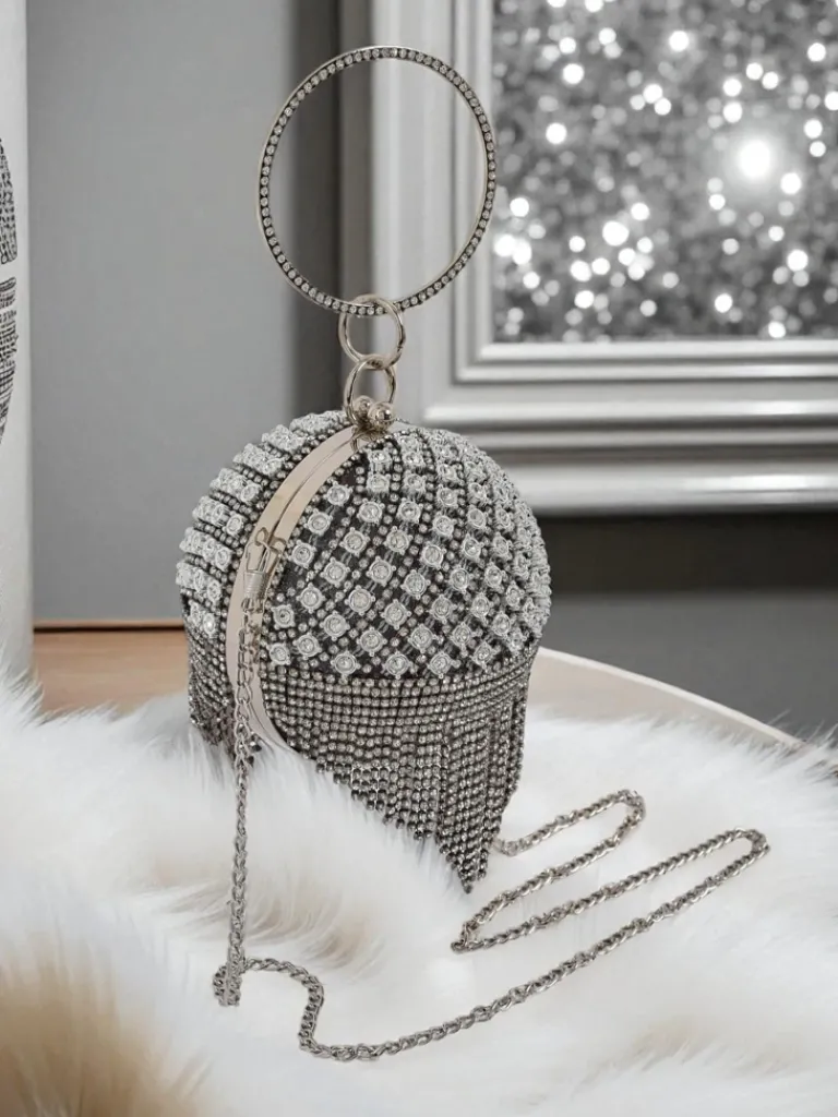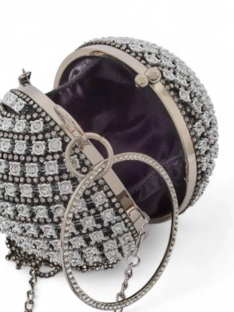 - Kulista kopertówka z połyskującymi cyrkoniami i eleganckim łańcuszkiem na ramię. Idealna na wieczorne wyjścia — przyciąga spojrzenia i dopełnia każdą stylizację.