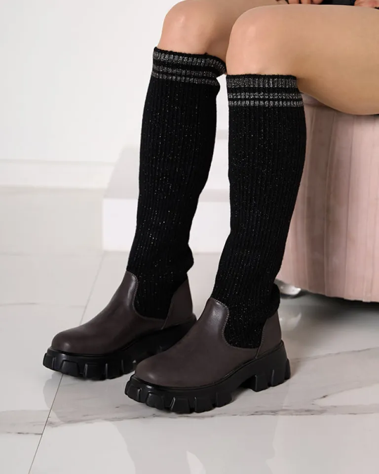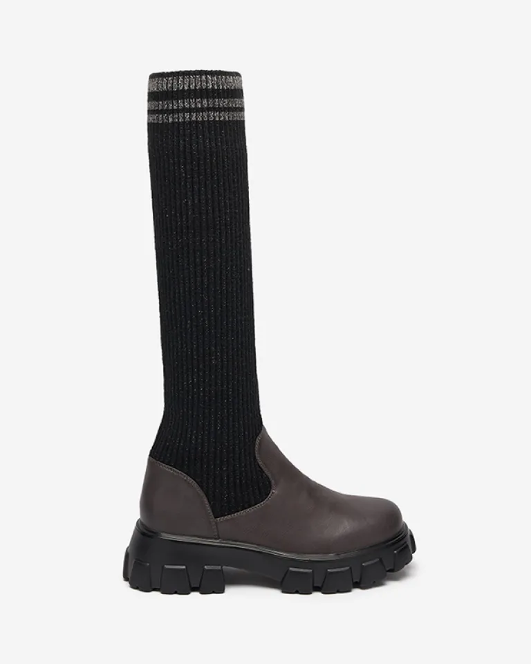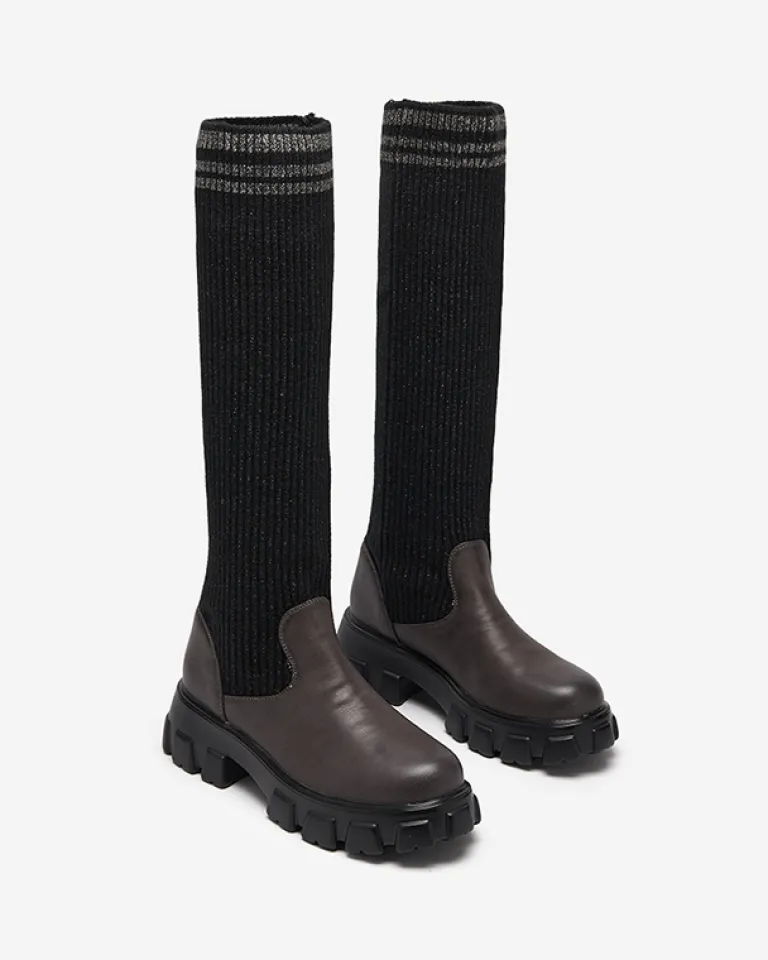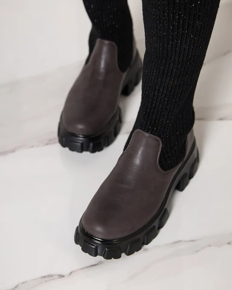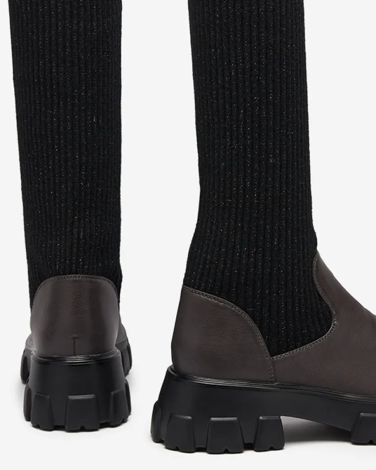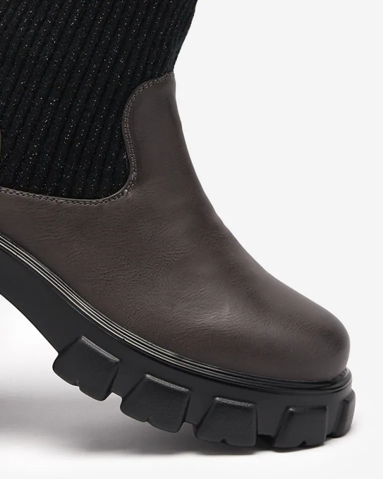 - Wsuwane kozaki damskie wykonane z połączenia skóry ekologicznej i tkaniny. Buty na grubszej podeszwie, z okrągłym noskiem i elastyczną cholewką. Będą idealnym dodatkiem do płaszcza! SZARE BUTY DAMSKIE KOZAKI NIEOCIEPLANE ALERPI