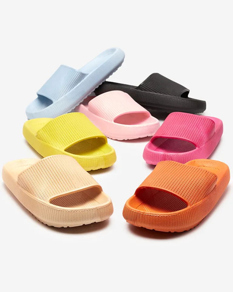 - Najmodniejsze w tym sezonie damskie gumowe klapki wykończone tłoczeniem a’la plecionka. Obuwie bardzo wygodne – idealne do ogrodu jak i na basen.