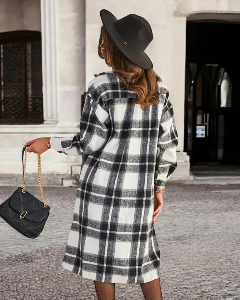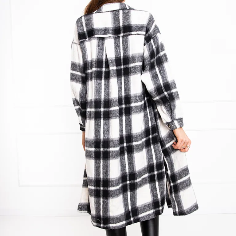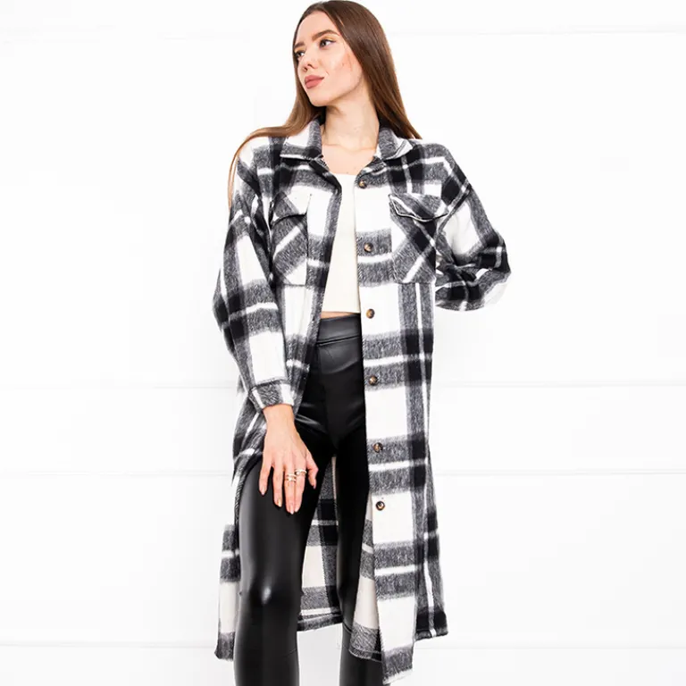 Czarna długa koszula damska w kratę Bluzki / Koszule / Koszulki
