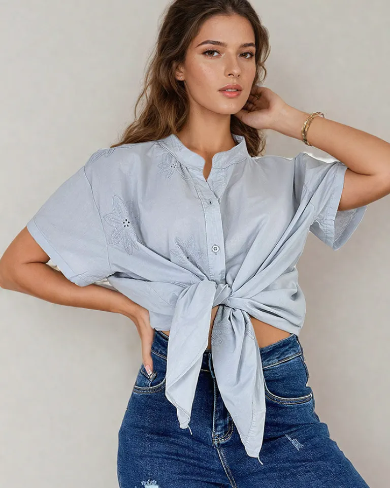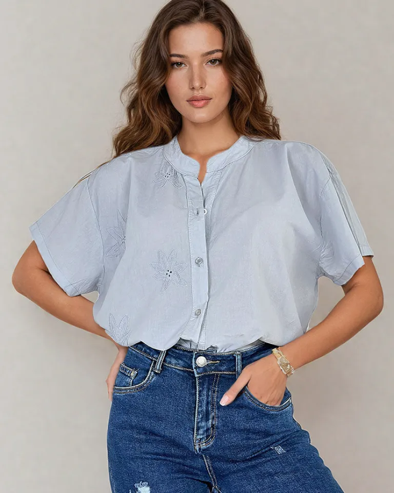 - Klasyczna damska koszula oversize, wykonana z przyjemnej tkaniny. Posiada kołnierzyk, jest zapinana na guziki oraz ozdobny haft. Prosty krój zapewni dopasowanie do każdej sylwetki! UWAGA: Dokładność pomiaru (+/-) 1 cm.