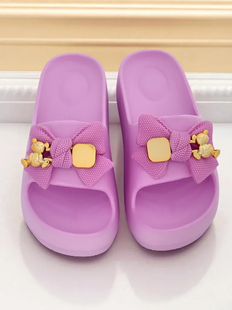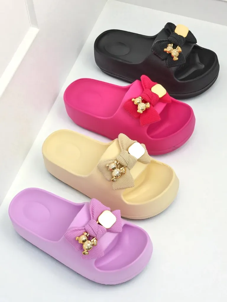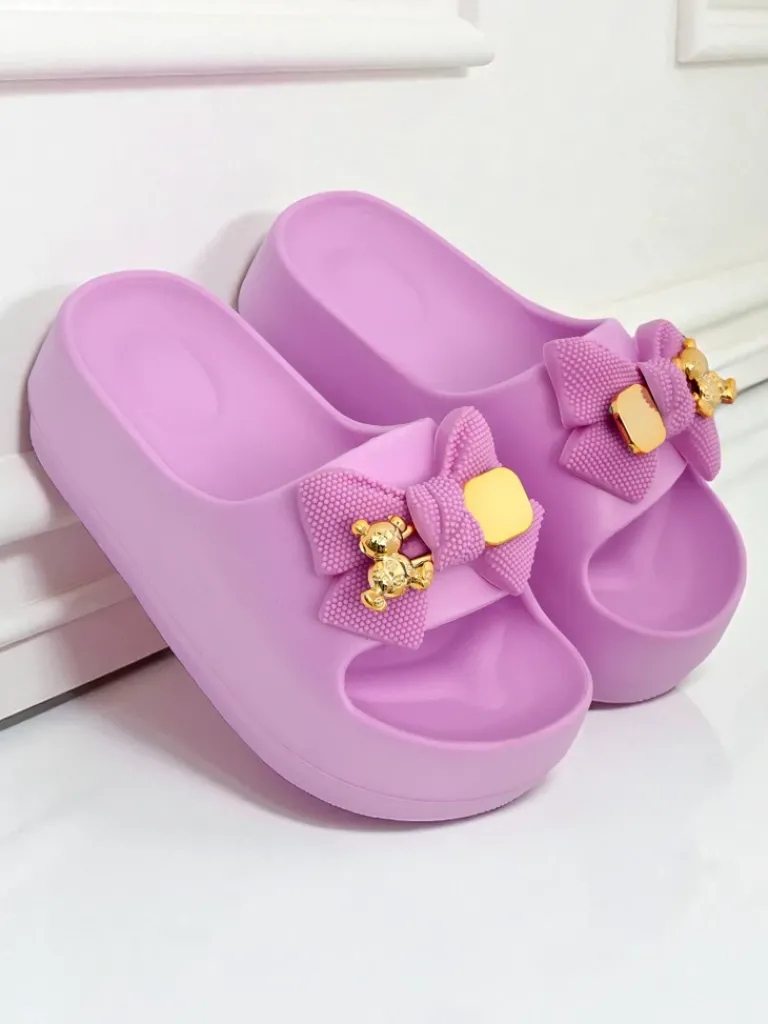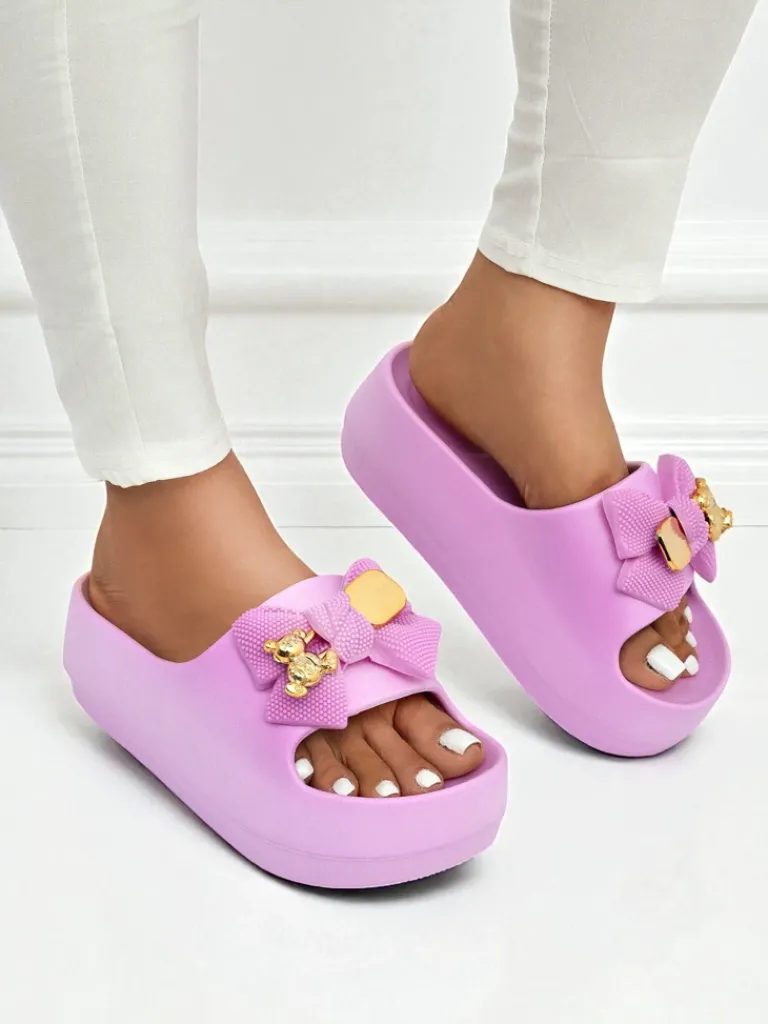 - Świetne damskie gumowe klapki na platformie. Posiadają na cholewce ozdobną kokardę. Idealny wybór na wakacje!