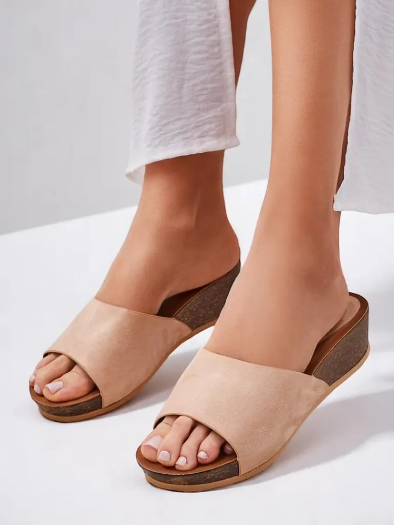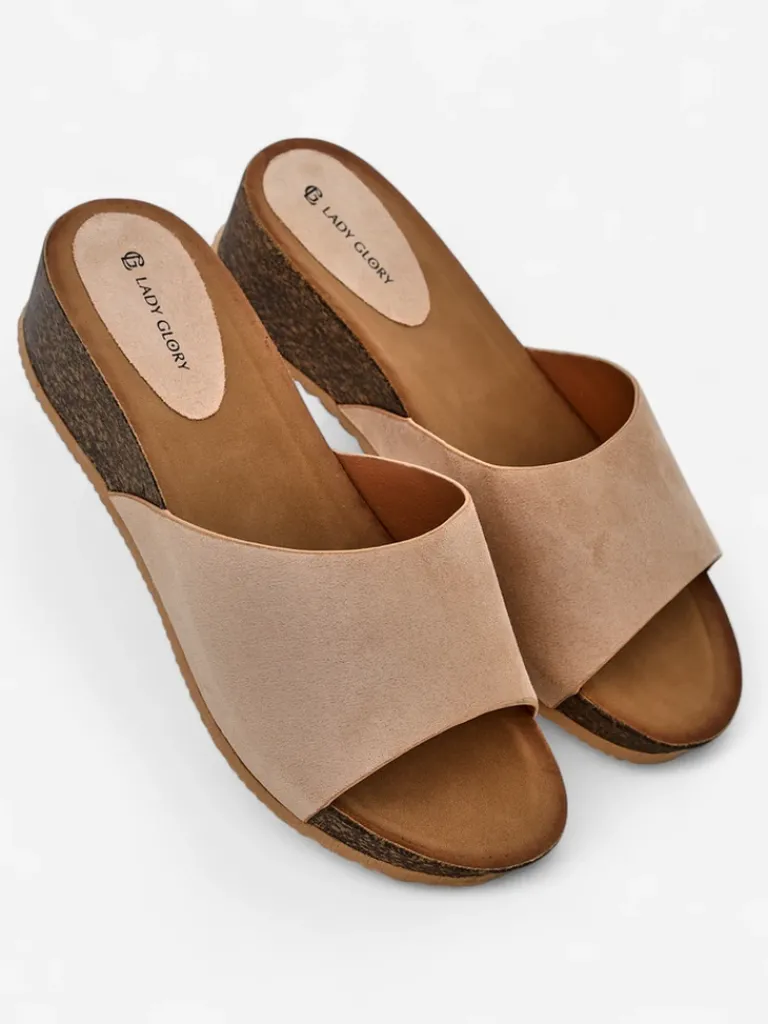 - Klapki damskie całościowo wykonane z zamszowej eko skóry. Niski koturn i platforma dodaje uroku i charakteru. Model posiada ozdobną podeszwę a’ la korek. Ciesz się wygodą i stylem zabierając te obuwie na wakacje!