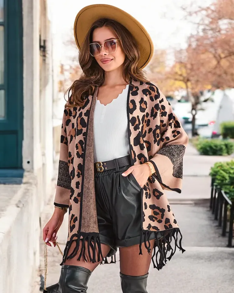 - Eleganckie ponczo damskie z ozdobnym printem i frędzlami. Miękki materiał, ciepło i styl w jednym. Idealne do każdej stylizacji. Dostępne w różnych kolorach.