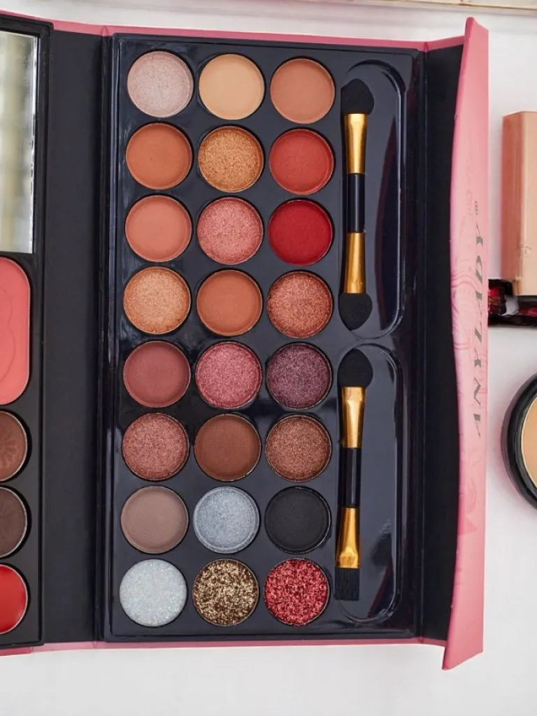 - Kompaktowa paletka do makijażu łączy cienie, produkty do konturowania i kolory do ust. Idealna w podróży i na co dzień – wszystko, czego potrzebujesz, w jednym poręcznym opakowaniu.