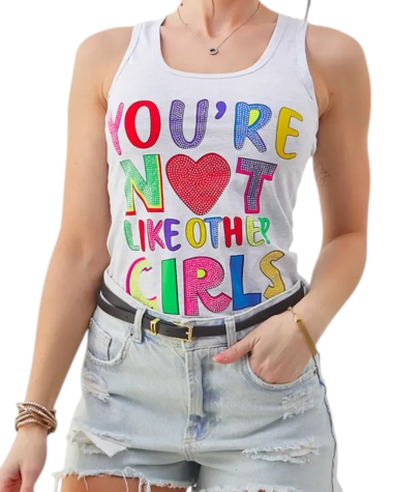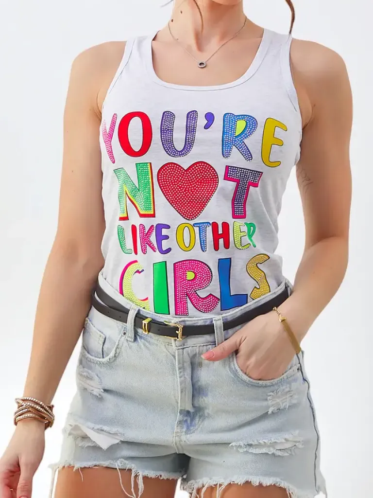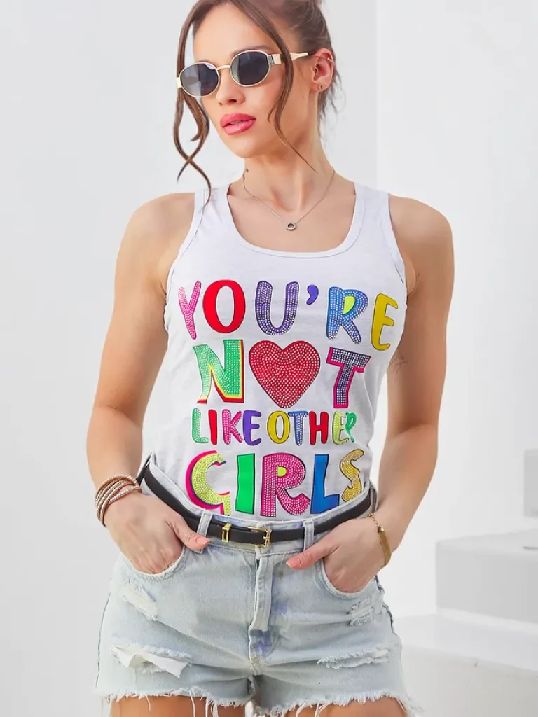 Discount Bawełniana bluzka bokserka damska na ramiączkach z napisami Bluzki / Koszule / Koszulki
