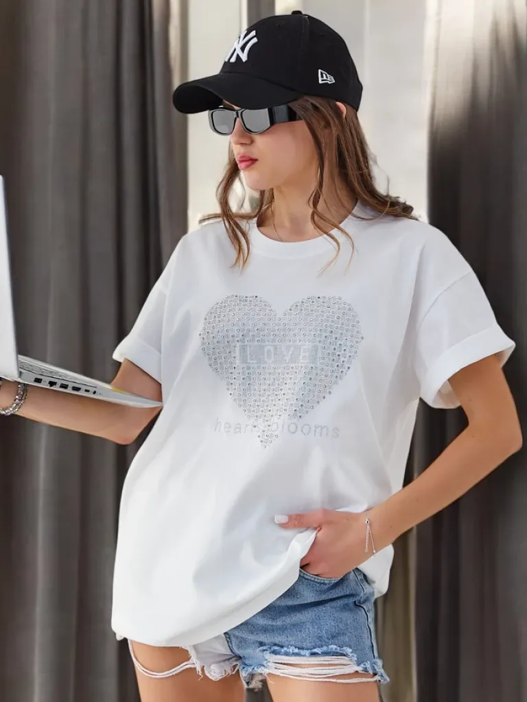 - Bawełniany damski t-shirt to lekka i wygodna propozycja na każdy dzień. Zainspirowany cyrkoniami, idealny do casualowych stylizacji. Miękka tkanina zapewnia komfort, a minimalistyczny design sprawia, że pasuje do różnych outfitów.