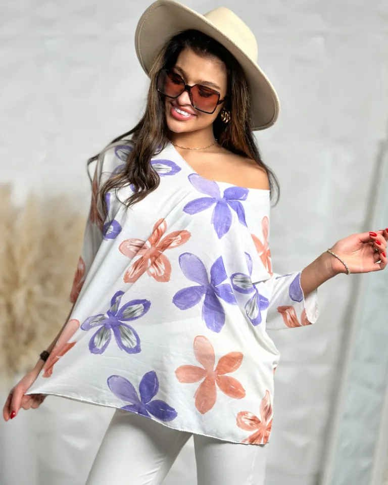 - Wzorzysta bluzka damska wykonana z miękkiego materiału. Dekolt w serek dodaje wyrafinowanego akcentu. Idealna na co dzień!