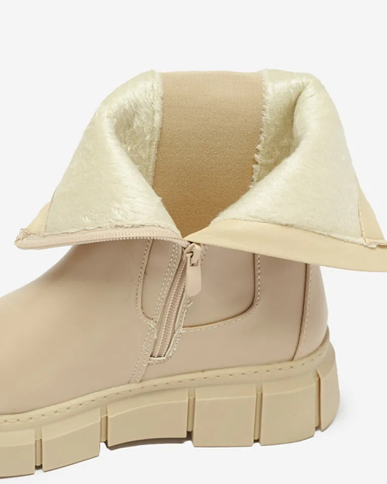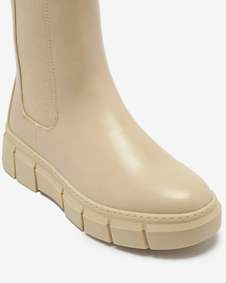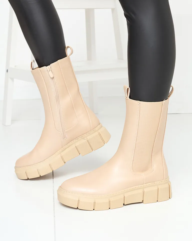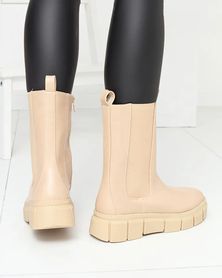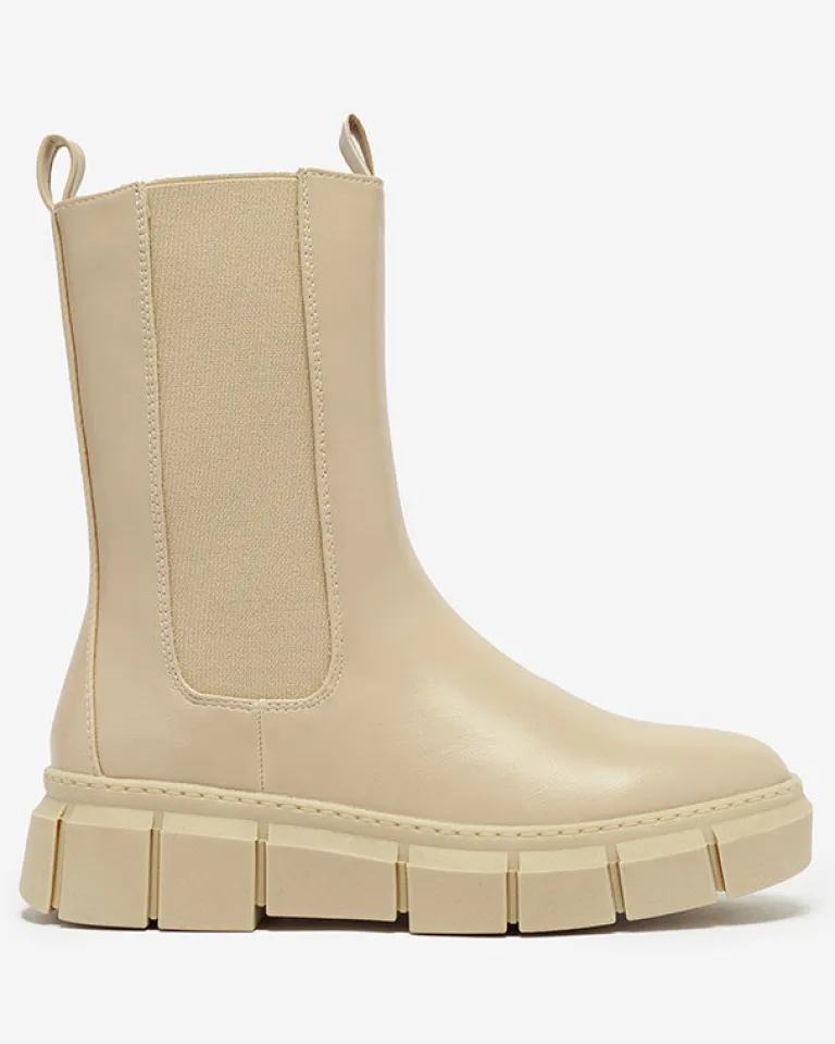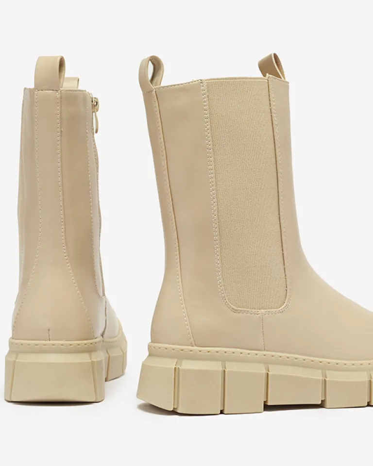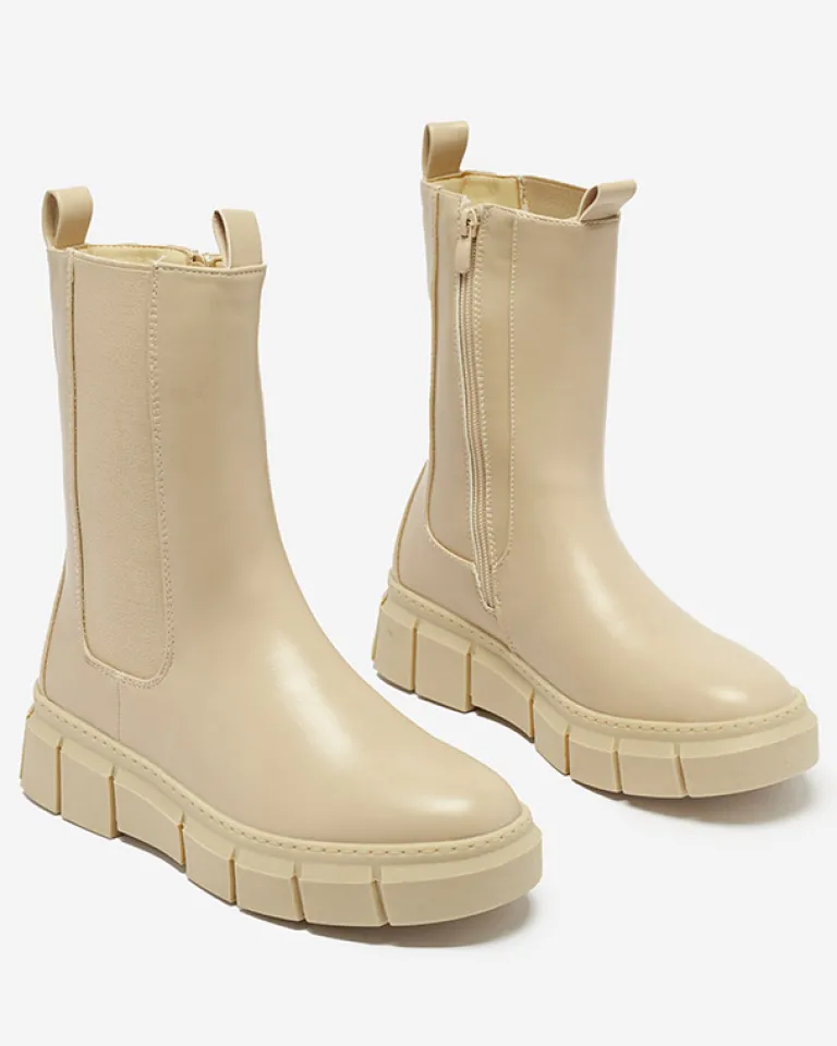 - Stylowe botki damskie wykonane ze skóry ekologicznej. Buty są zapinane na suwak, posiadają elastyczną wstawkę po boku, gumową platformę, a w środku delikatne ocieplenie. BEŻOWE BUTY BOTKI DAMSKIE COUELL