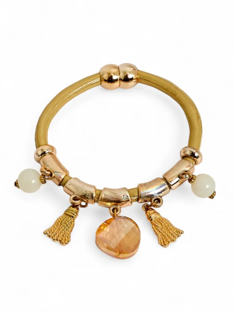 - Kobieca bransoletka z koralikami i subtelnym brokatowym akcentem. Lśni przy każdym ruchu, dodając blasku codziennym i wieczorowym stylizacjom. Lekka, wygodna i pełna uroku.