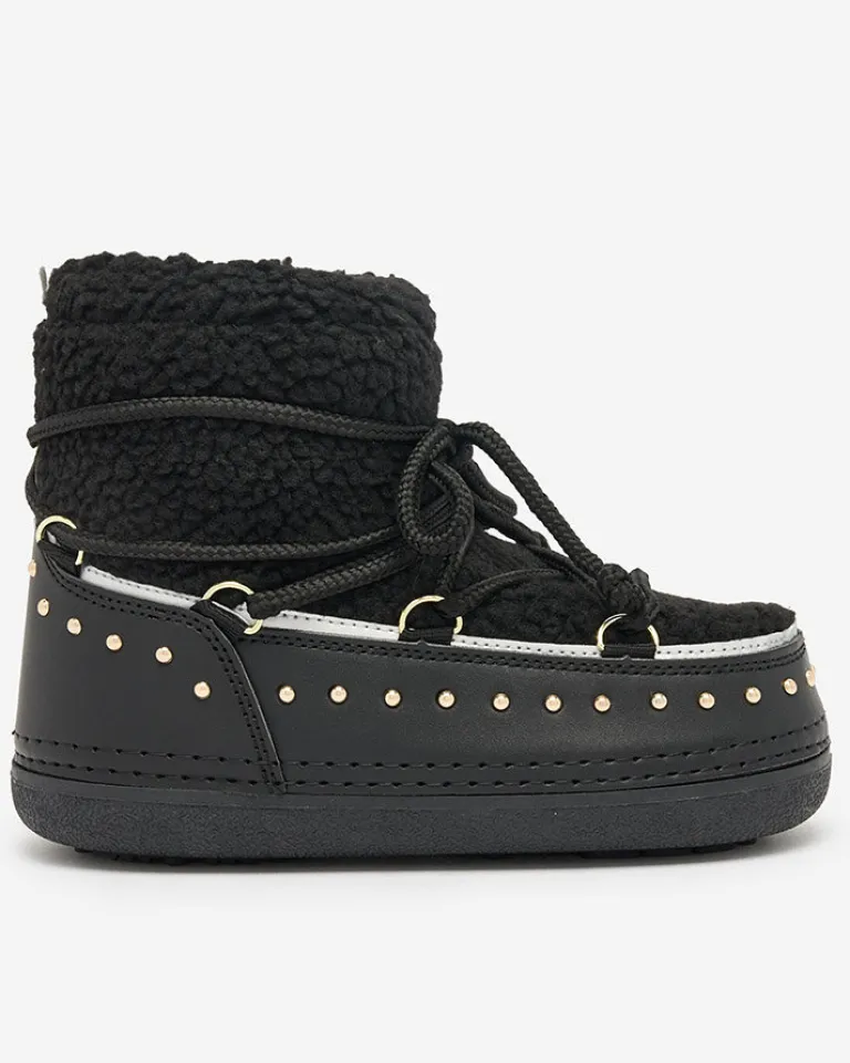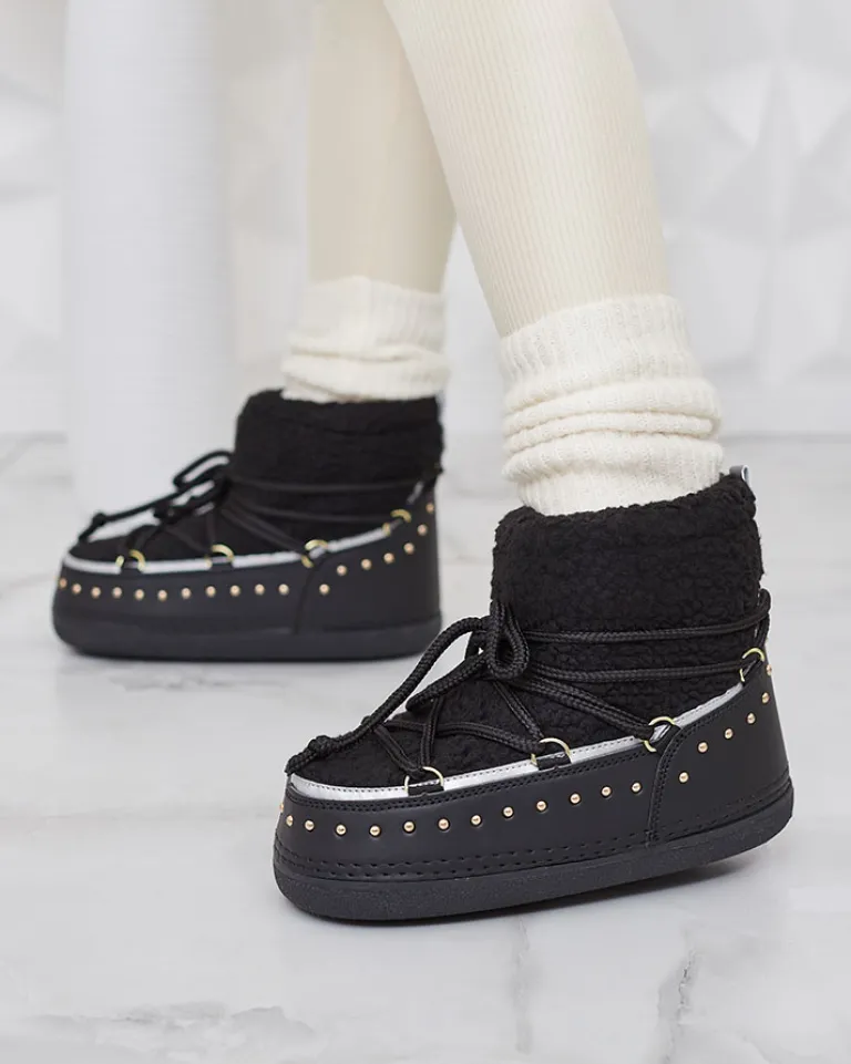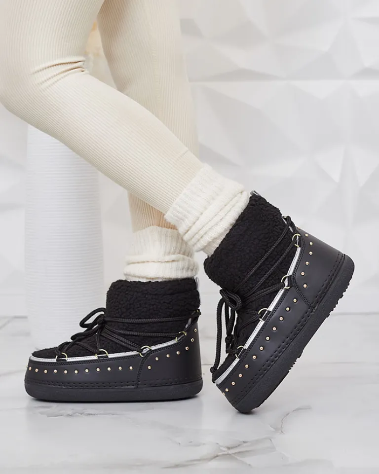 - Ocieplane damskie zimowe buty typu śniegowce na płaskiej podeszwie. Cholewka sznurowana, wykonana jest z połączenia eko skóry oraz kożuszka. Ocieplenie w formie pianki. Idealna baza na zimę!