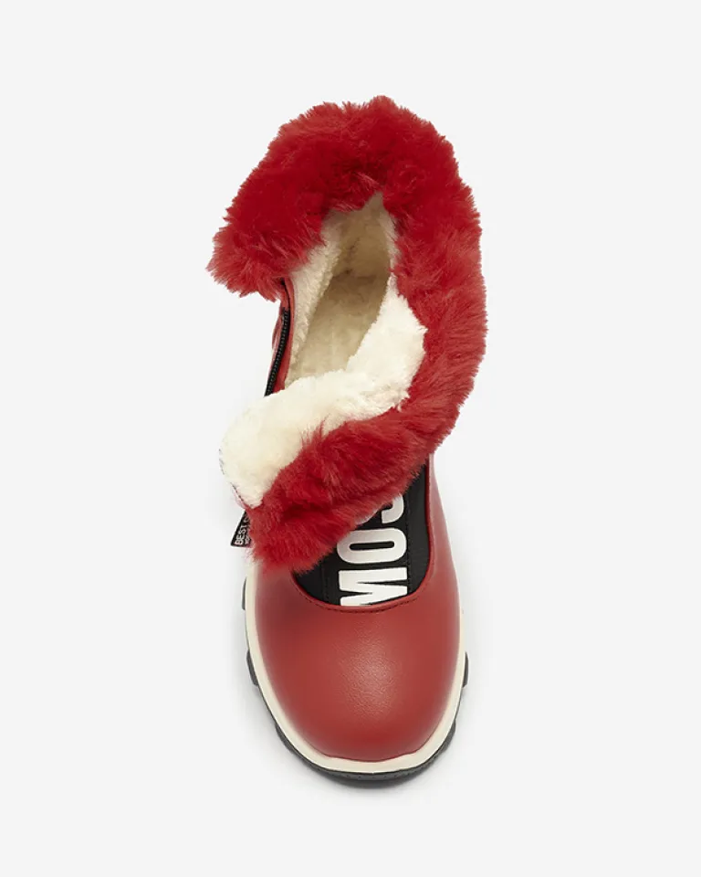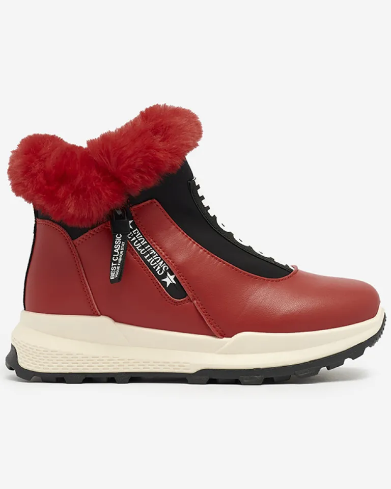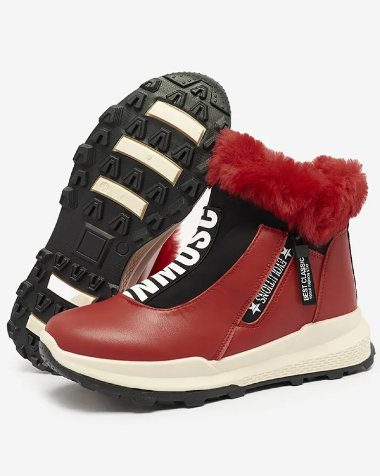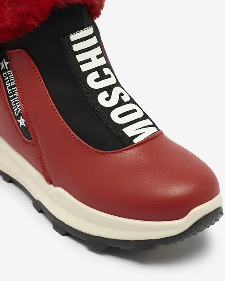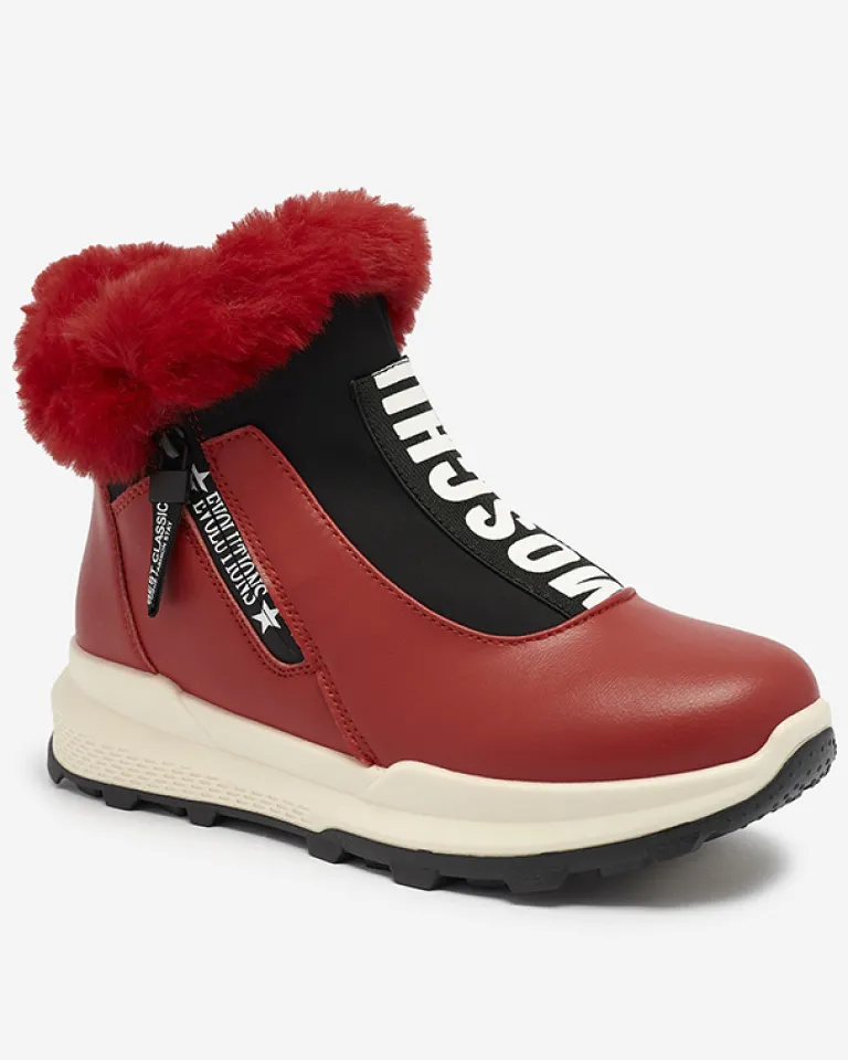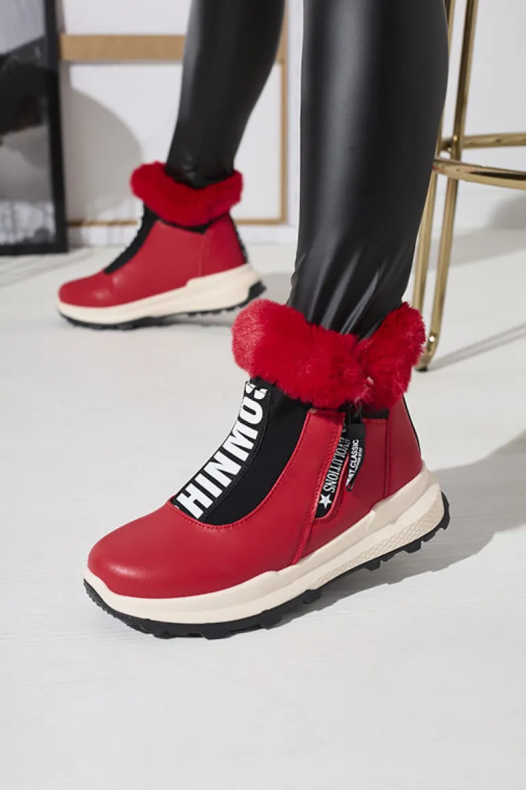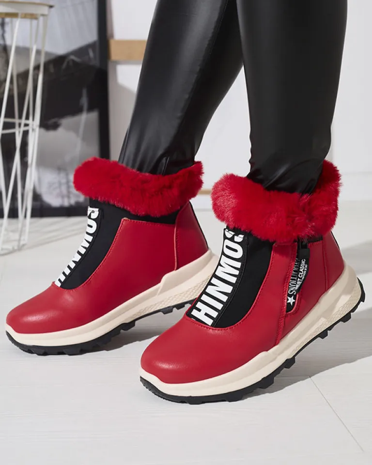 - Damskie botki wykonane ze skóry ekologicznej, środek jest ocieplany miękkim futerkiem. Z przodu cholewki elastyczna wstawka z ozdobnym napisem, obuwie zapinane na suwak. CZERWONE BUTY BOTKI DAMSKIE OCIEPLANE SCHERR