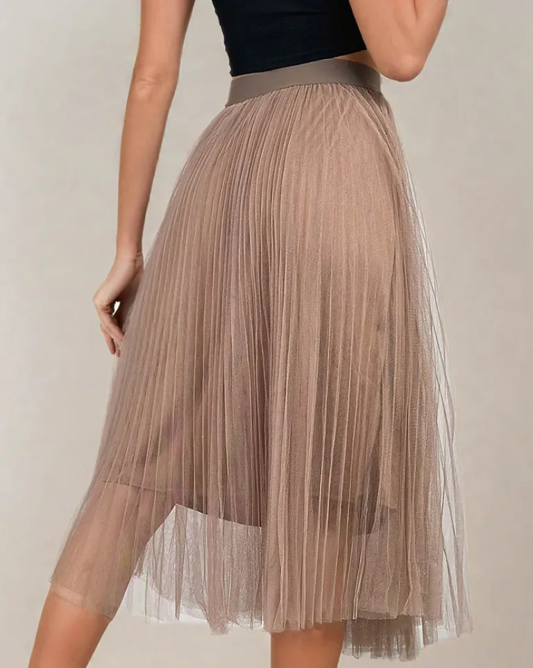 - Ponadczasowa damska dwuwarstwowa spódnica o długości midi. Model posiada elastyczną gumę w pasie, która idealnie podkreśla talię. Ta spódnica to świetny akcent do Twojego codziennego looku!