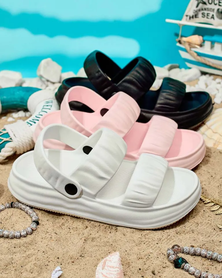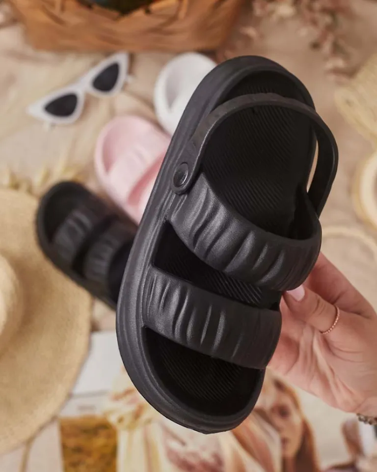 - Świetne damskie gumowe klapki na płaskiej podeszwie. Połączenie stylu i wygody! Idealny wybór na wakacje!