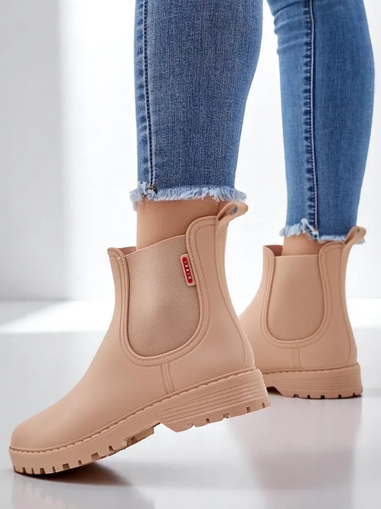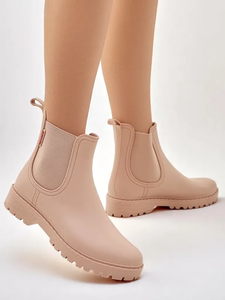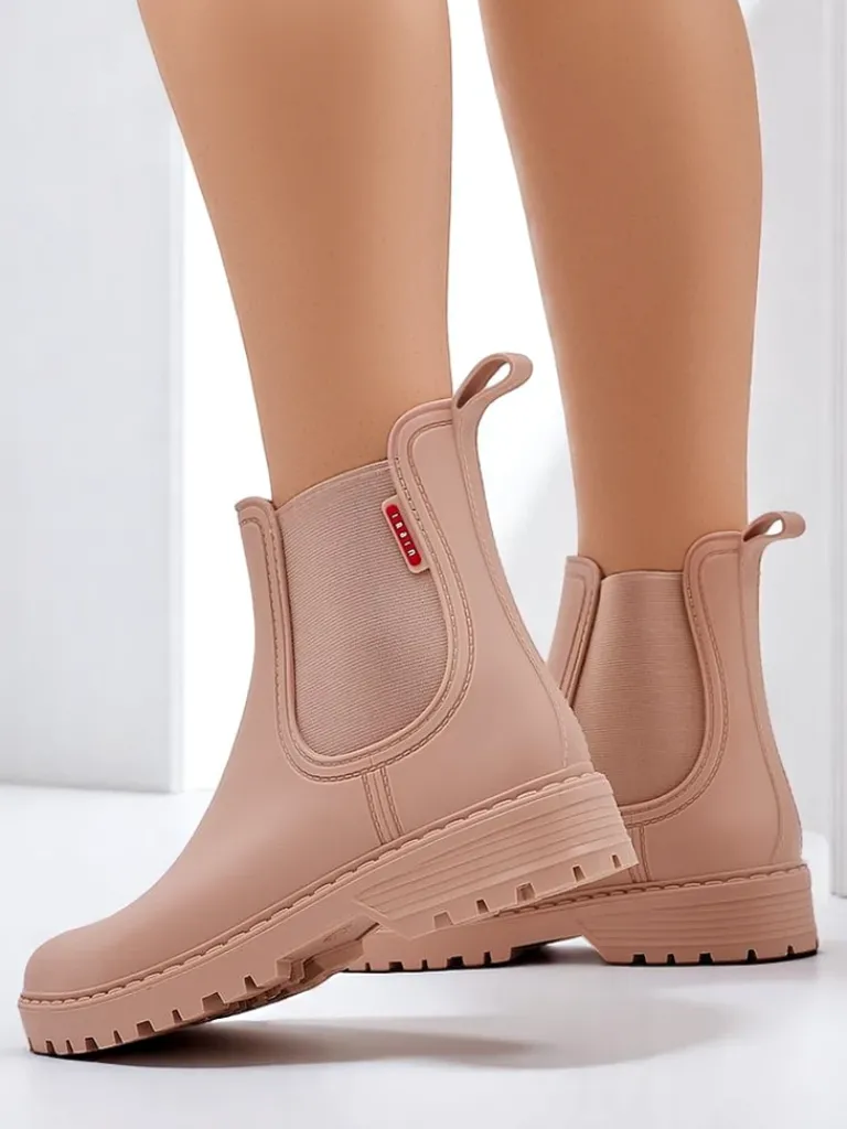 - Klasyczne damskie kalosze na płaskim obcasie, wykonane z materiału gumowego. W środku wkładka z tkaniny. Idealne na jesienne deszczowe dni!
