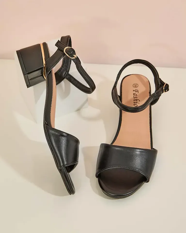 - Damskie sandałki na słupku – to idealny pomysł na gorące letnie dni. Model wykonany ze skóry ekologicznej i eko skórzanej wkładki. Obuwie zapinane na sprzączkę. Połączenie stylu i wygody!