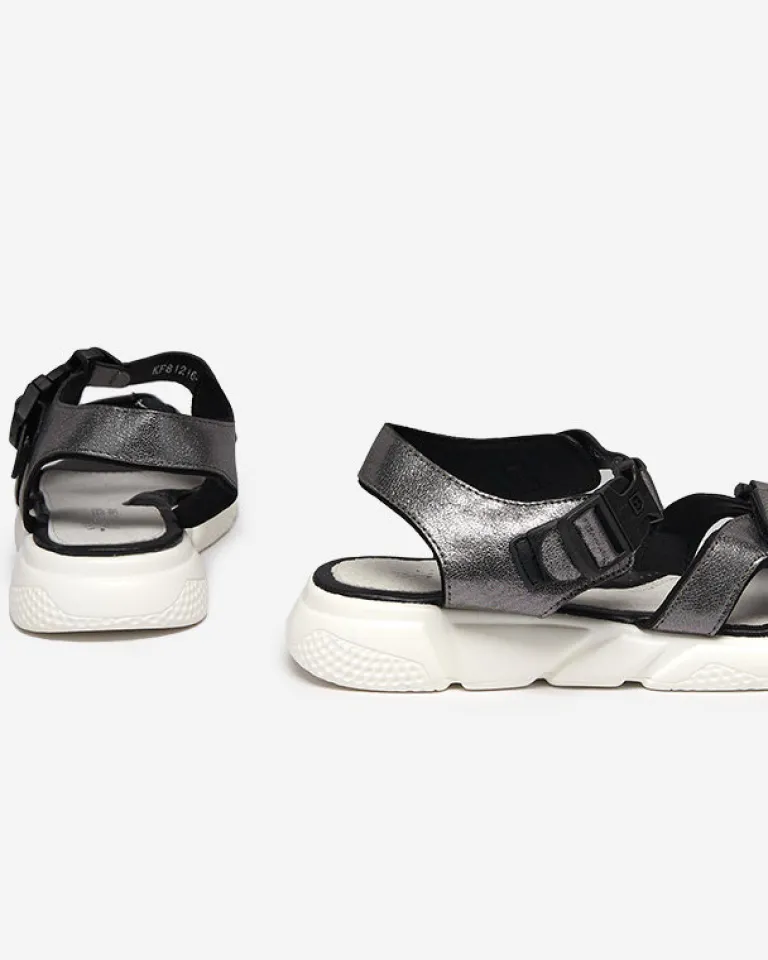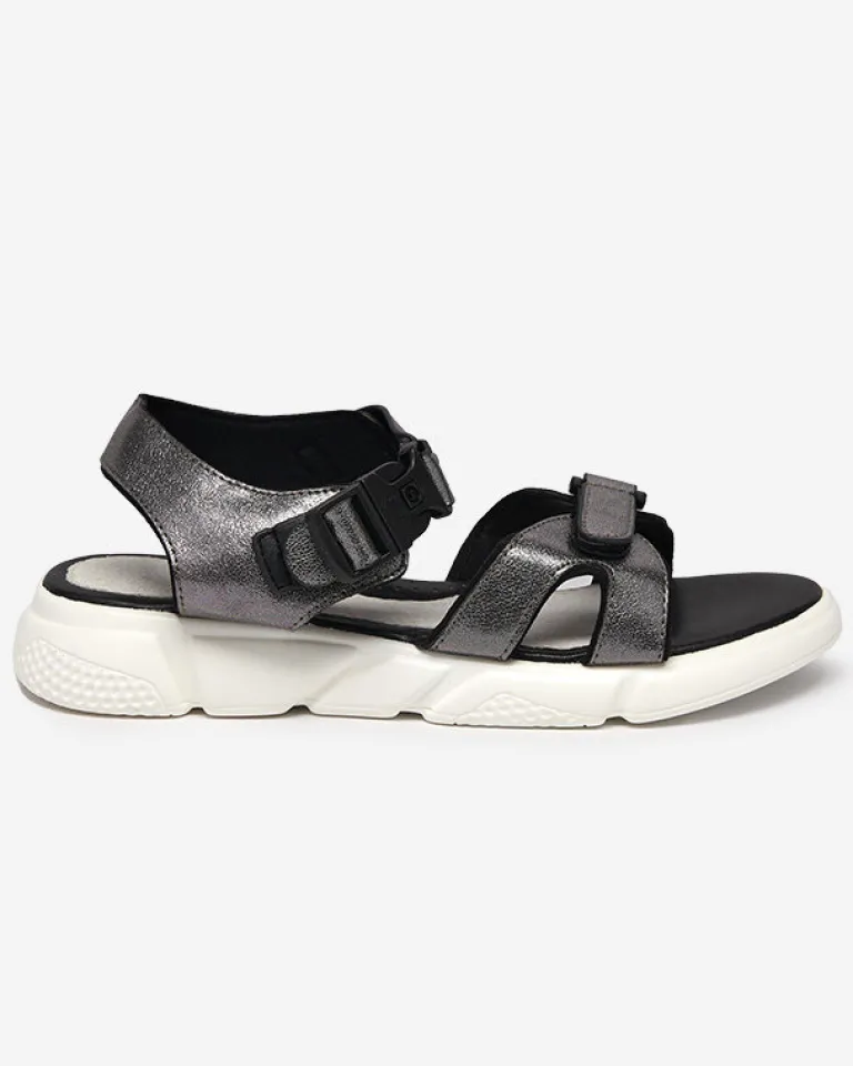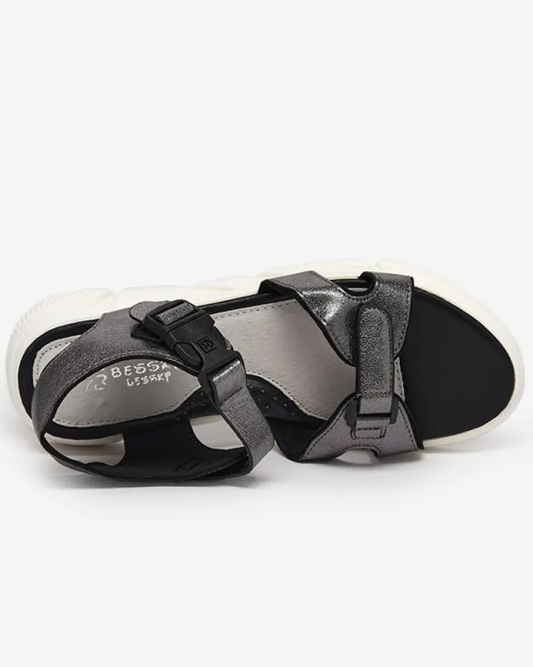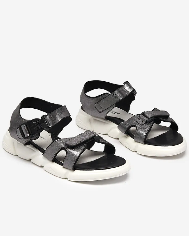 - Wyjątkowe dziewczęce sandały wykonane z błyszczącej tkaniny. Obuwie zapinane na klamrę wokół kostki oraz na rzep przy palcach. W środku miękka, eko skórzana wkładka. Sprawdzą się na co dzień!