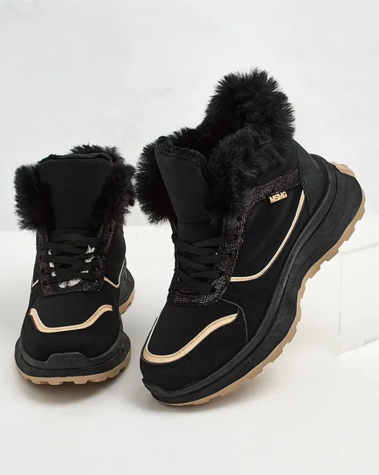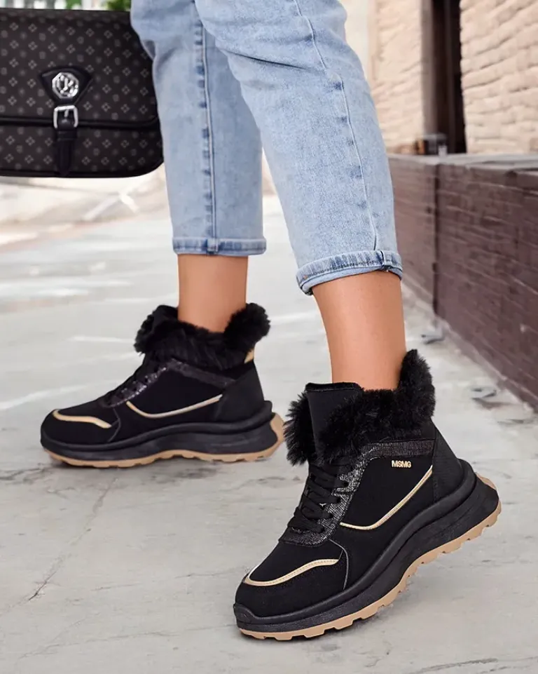 - Sportowe sneakersy damskie na grubszej podeszwie. Cholewka sznurowana, wykonana z nubuku ekologicznego. Wnętrze w całości ocieplone futerkiem. Idealne do sportowych outfitów!