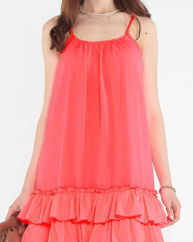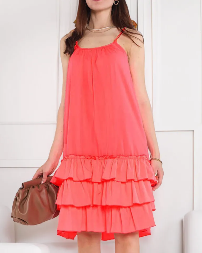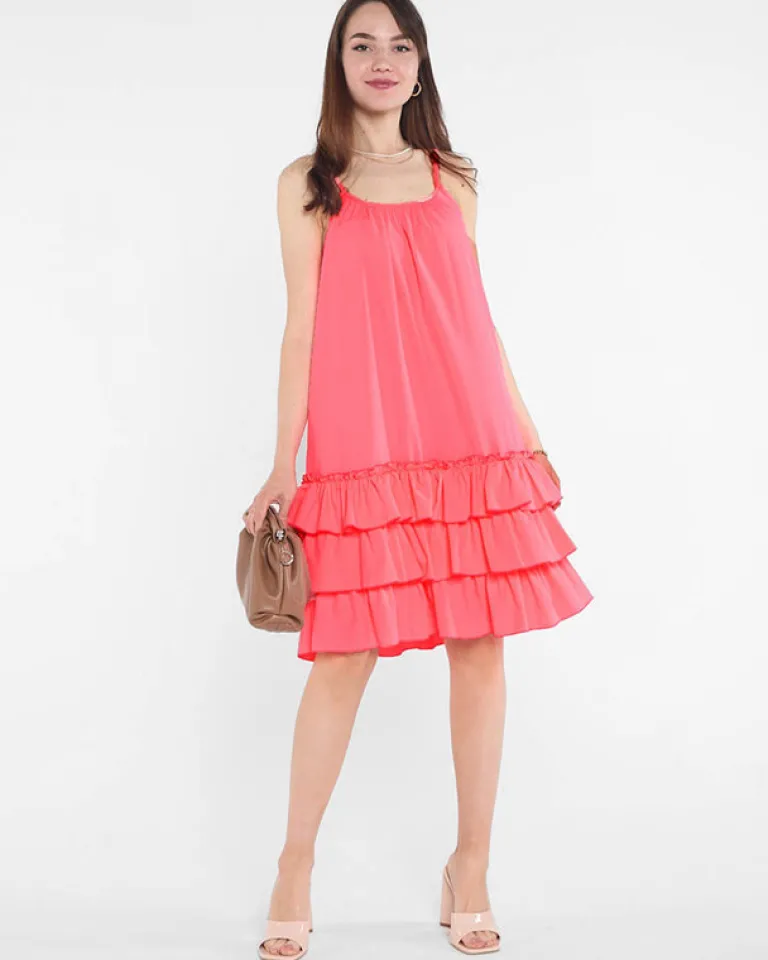 - Prześliczna letnia damska sukienka mini, na cienkich nieregulowanych ramiączkach. Model o prostym kroju z dołem wykończonym falbaną. Idealna sukienka na wiele okazji, niezastąpiona w letnich stylizacjach. UWAGA: Dokładność pomiaru (+/-) 1 cm.
